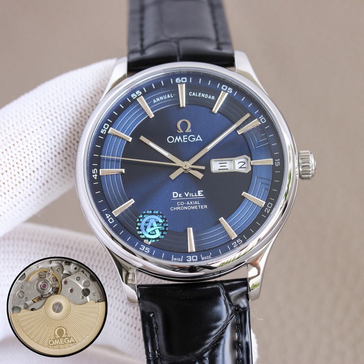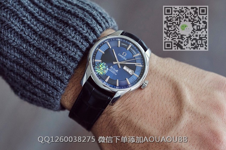 欧米茄碟飞系列双日历男士全自动机械腕表 蓝色表盘