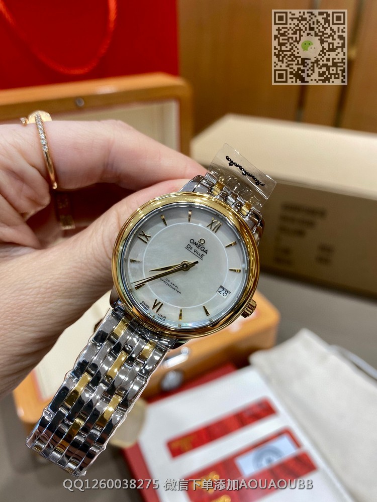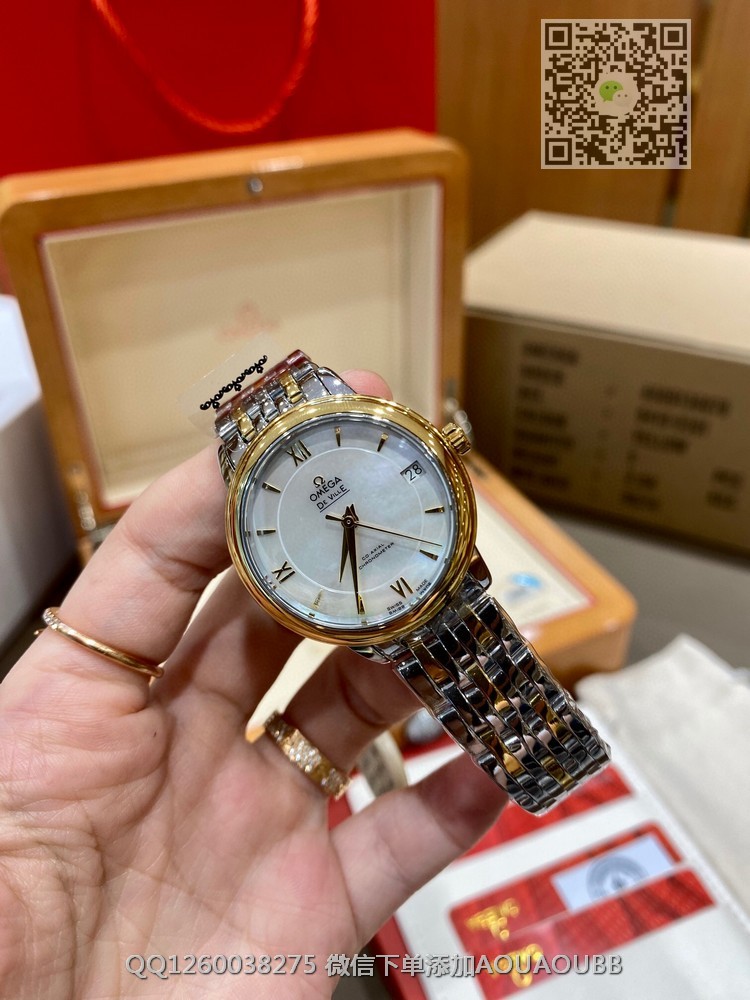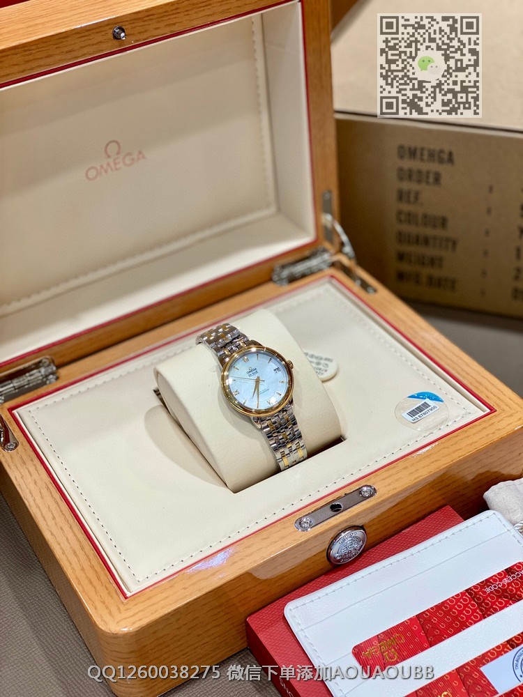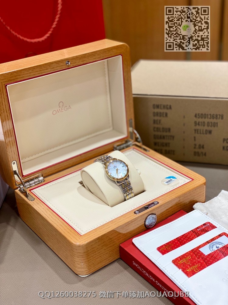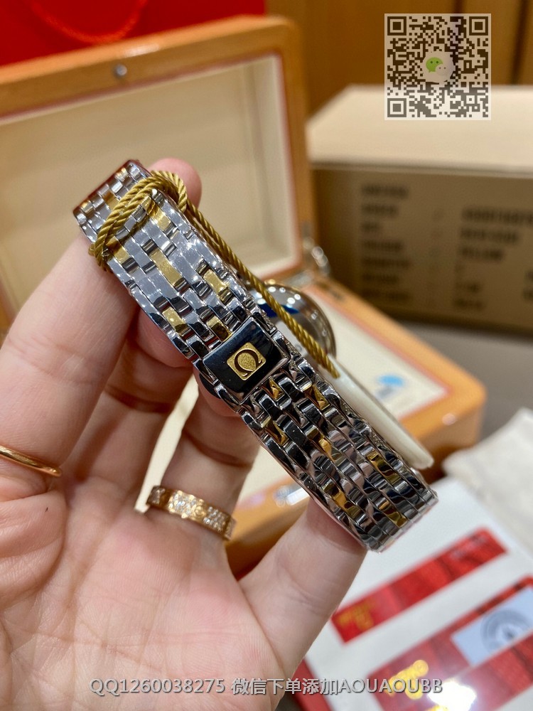 【品牌】欧米茄【产品介绍】欧米加蝶飞经典女款系列【表壳】腕表尺寸32.7*9.5 正品一比一、厚度适合女性佩戴大小适中,弧形表圈圆润光滑,抛光打磨光亮有泽。实物效果保持MKS一贯作风最高级别。市场唯一家购买正品开发。【款式】女款【尺寸】32.7mmx9.5mm【表带】精钢表带【镜面】蓝宝石镜面【机芯】原装进口9015机芯【防水】50米【配件】原装盒,说明书,质保卡,吊牌,香港机打发票【品质检测】保证所有手表实物拍摄,所见即所得 , 手表发货前都会有严格检查测试,确保您收到的手表无质量问题