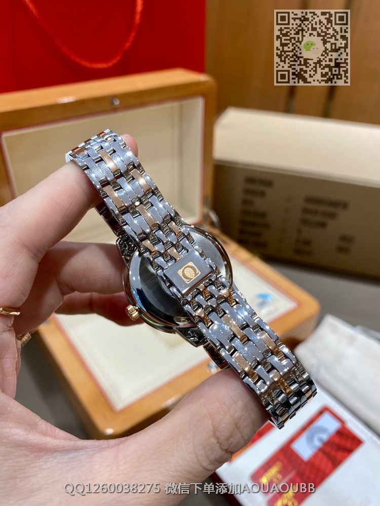 【品牌】欧米茄【产品介绍】欧米加蝶飞经典女款系列【表壳】腕表尺寸32.7*9.5 正品一比一、厚度适合女性佩戴大小适中,弧形表圈圆润光滑,抛光打磨光亮有泽。实物效果保持MKS一贯作风最高级别。市场唯一家购买正品开发。【款式】女款【尺寸】32.7mmx9.5mm【表带】精钢表带【镜面】蓝宝石镜面【机芯】原装进口9015机芯【防水】50米【配件】原装盒,说明书,质保卡,吊牌,香港机打发票【品质检测】保证所有手表实物拍摄,所见即所得 , 手表发货前都会有严格检查测试,确保您收到的手表无质量问题