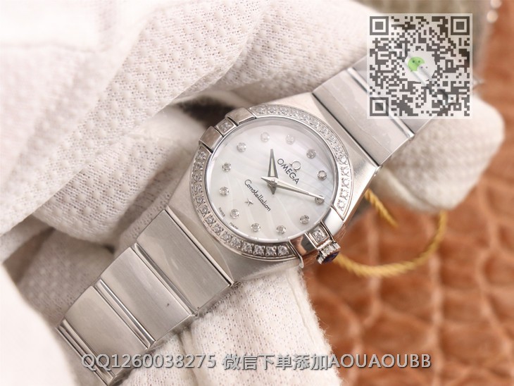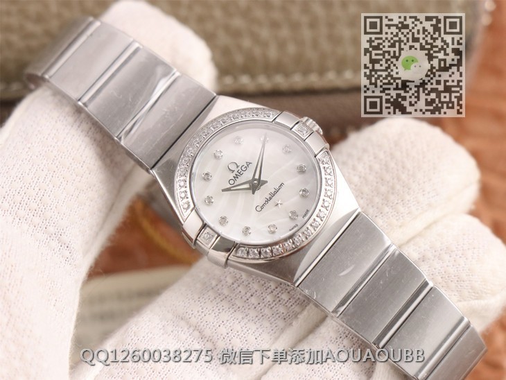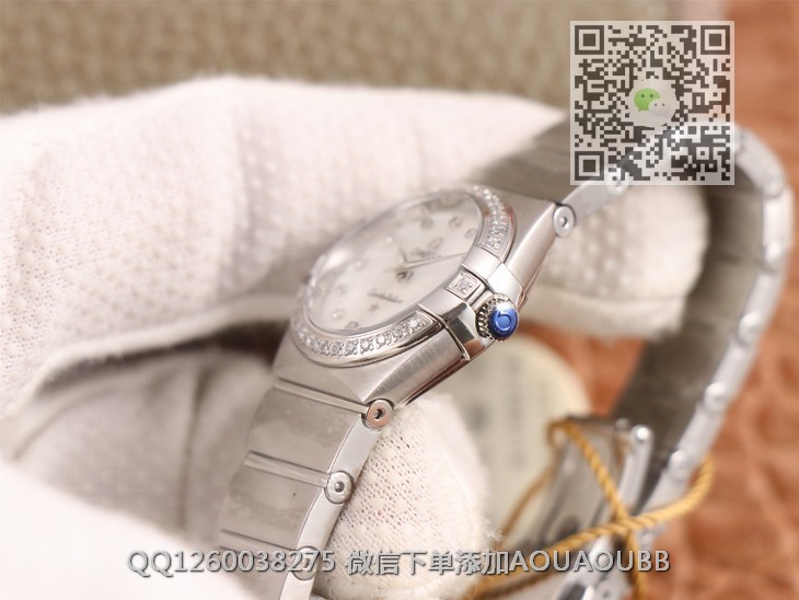 【产品介绍】V6欧米茄星座系列,27毫米石英腕表,搭载原版欧米茄L963.2专用机芯选用进口SUS316精钢钢色更加白皙所有散件均可同原版互用,三表带尾粒logo采用18k金,永不褪色,表壳把管采用内六角旋入式把管,防水性能更佳,壳的耳位经过线切割慢走丝加工而出,面玻璃电镀air双面无色增透膜,通透十足,字面纹路.logo.五角星及钻的镶嵌手法按原版,细节讲究!
