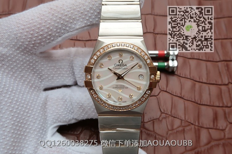 【品牌】欧米茄【产品介绍】欧米茄经典星座系列【款式】男款【尺寸】小号35mm/大号38mm【表带】精钢表带【镜面】蓝宝石镜面【机芯】瑞士2500/8500全自动机芯【防水】50米【配件】原装盒,说明书,质保卡,吊牌,香港机打发票【品质检测】保证所有手表实物拍摄,所见即所得 , 手表发货前都会有严格检查测试,确保您收到的手表无质量问题