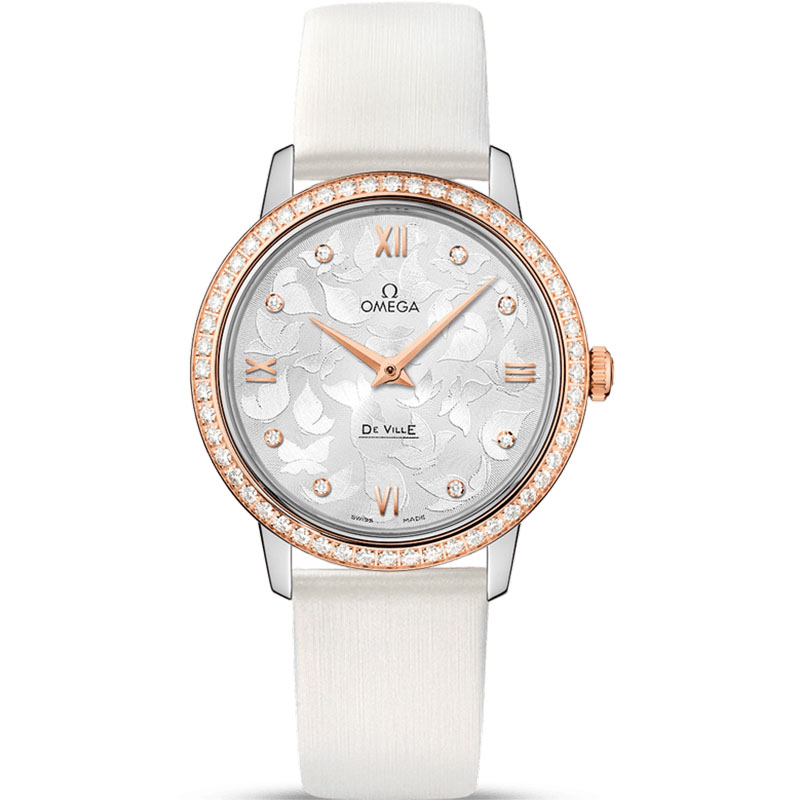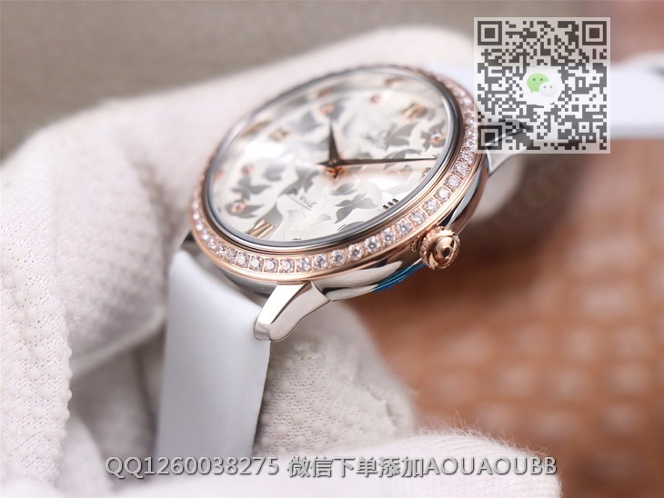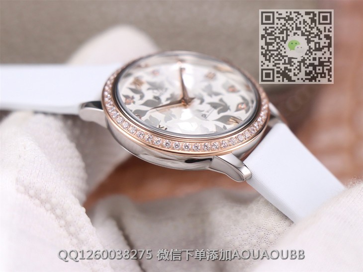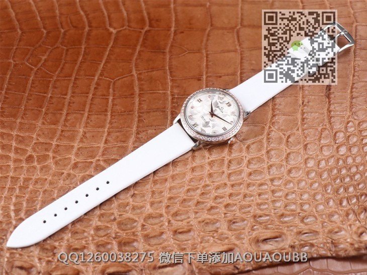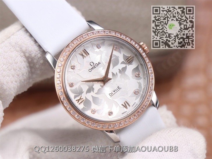 【品牌】欧米茄【产品介绍】3s新品欧米茄碟飞系列典雅系列.尺寸32.7mm,4061机芯,字面蝴蝶图案采用独特吊饰工艺,搭配白色缎丝皮表带,尽显自然的魅力与美感!【款式】女款【尺寸】32.7mm【表带】缎丝皮表带【镜面】蓝宝石镜面【机芯】4061瑞士原装石英机芯【防水】50米【配件】原装盒,说明书,质保卡,吊牌,香港机打发票【品质检测】保证所有手表实物拍摄,所见即所得 , 手表发货前都会有严格检查测试,确保您收到的手表无质量问题