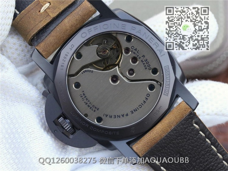 【品牌】沛纳海【产品介绍】XF沛纳海pam375 搭载手动P3000机芯,47毫米直径,拱形蓝宝石玻璃泡泡镜更显档次。男士腕表,皮表带,透底【款式】男款【尺寸】直径47mm【表带】疯马皮表带【镜面】蓝宝石镜面【机芯】手动P3000机芯【防水】50米【配件】原装盒,说明书,质保卡,吊牌,香港机打发票【品质检测】保证所有手表实物拍摄,所见即所得 , 手表发货前都会有严格检查测试,确保您收到的手表无质量问题