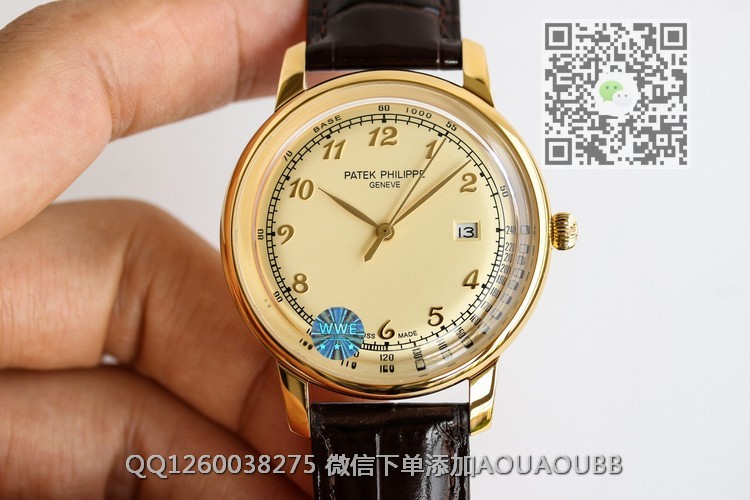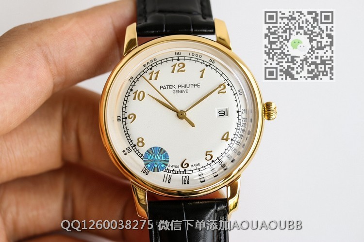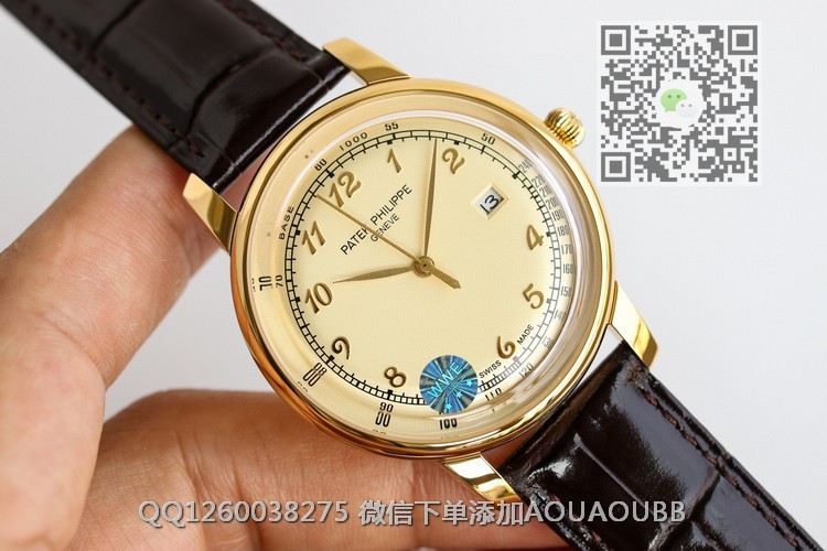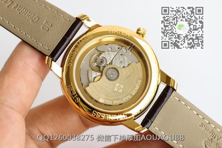 【产品介绍】1.百达翡丽PATEK PHILIPPE 升级版。团队历时9个月精心设计,敢为人先,力求完美,突破多层技术瓶 2.市场独家最新锅盖玻璃材质,超强的3D立体感,超薄工艺,直径41mm 3.款式采用原装9015机芯,每小时振频28800次,零返修质量 4.款式搭配意大利牛皮让手腕更贴合舒适