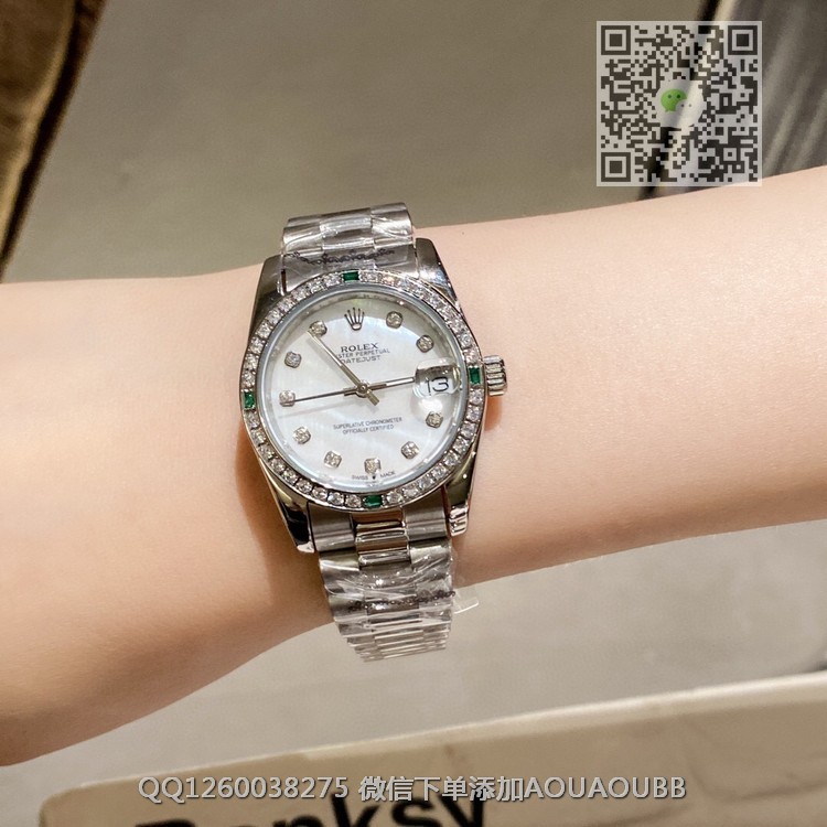 【品牌】劳力士【产品介绍】劳力士日志系列经典女款31-原装压扣 小红书火爆推荐 表盘采用A级珍珠贝壳材质彰璀璨夺目、设计显出独特高贵优雅女神气质!316精钢表壳搭配施华洛世奇水晶钻石,纯手工镶嵌而成,女性气质,高端大气,不显浮华的风格广受成功人士喜爱,逐渐深刻人心,并备受各界女士推重。工艺精湛,糅合尊贵、典雅和独特气质于一身,位列世界手表业之翘楚材料,31mm尺寸更适合中国女士手腕【款式】女款【尺寸】直径31mm【表带】精钢表带【镜面】蓝宝石镜面【机芯】瑞士石英机芯【防水】50米防水【配件】原装盒,说明书,质保卡,吊牌,香港机打发票【品质检测】保证所有手表实物拍摄,所见即所得 , 手表发货前都会有严格检查测试,确保您收到的手表无质量问题