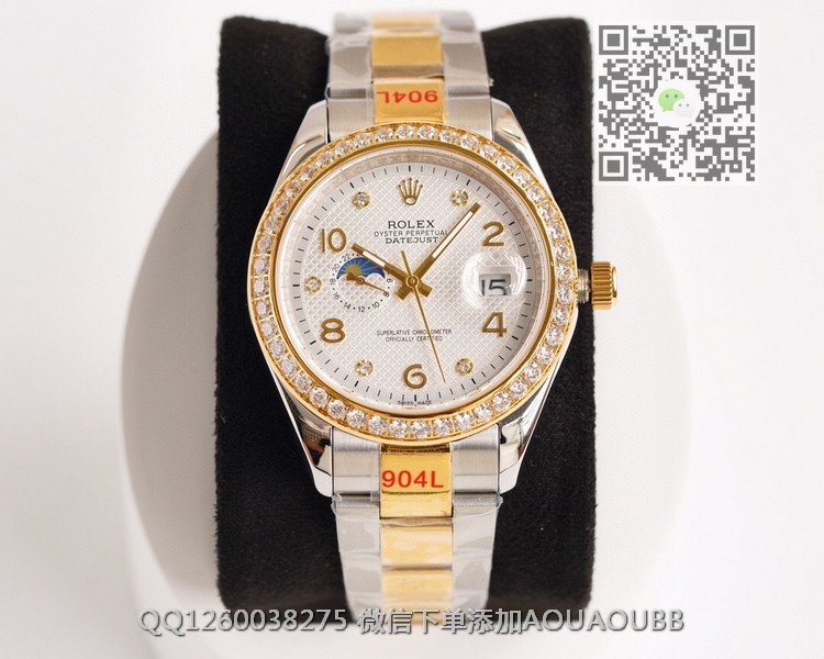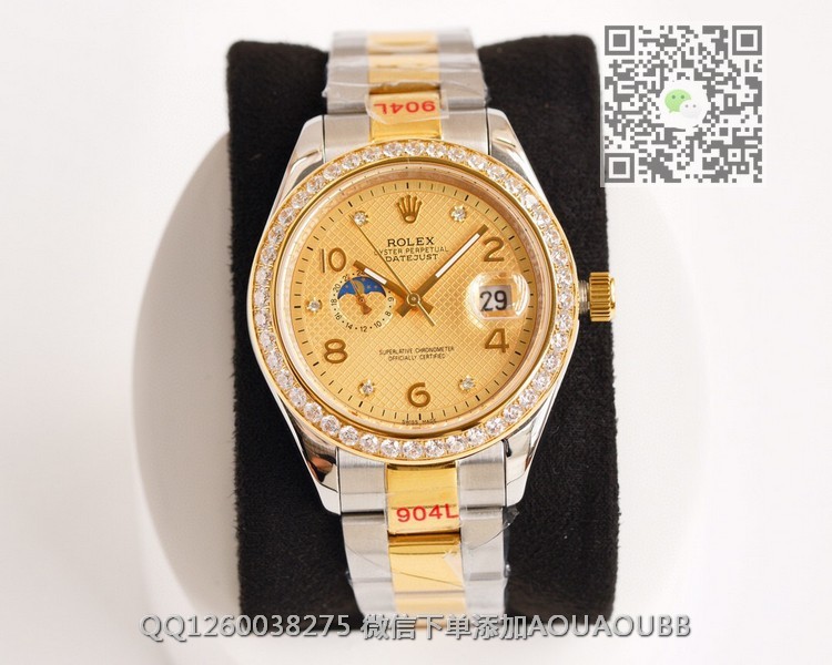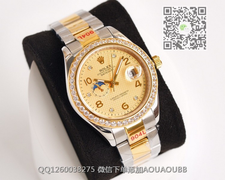 【品牌】劳力士【产品介绍】劳力士日志系列精品月相男士全自动机械商务腕表 9点位置真日月星辰功能【款式】男款【尺寸】直径41mm【表带】精钢表带【镜面】蓝宝石镜面【机芯】瑞士ETA全自动机芯【防水】100米防水【配件】原装盒,说明书,质保卡,吊牌,香港机打发票【品质检测】保证所有手表实物拍摄,所见即所得 , 手表发货前都会有严格检查测试,确保您收到的手表无质量问题