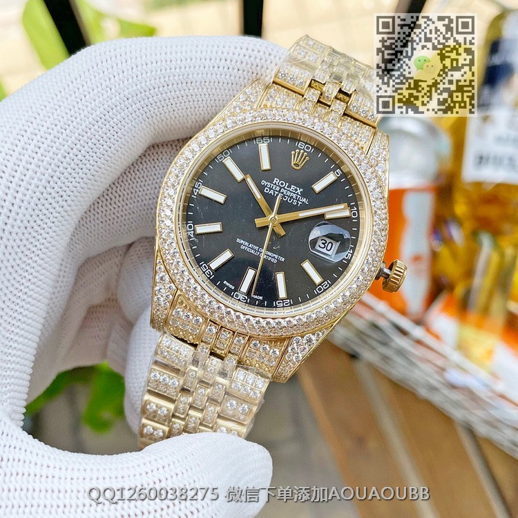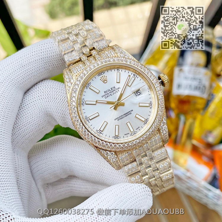 【品牌】劳力士【产品介绍】高清实拍复刻版日志满钻土豪版劳力士奢华18k纳米技术!5组满钻原装表带!2300+颗AAA锆石精心打造!认准镶嵌工艺非市面上贴钻普通工艺!!(非人为因素5年内掉钻免费补钻)使的灯光下闪耀效果更佳!送礼最佳!全新搭配5组满钻钢带!41mm原装尺寸,采用全自动进口3255机芯蓝宝石防刮花玻璃镜面,18k真空电镀永不掉色,送礼最佳奢华推荐!【款式】男款【尺寸】直径41mm【表带】满钻精钢表带【镜面】蓝宝石镜面【机芯】3255机芯【防水】100米防水【配件】原装盒,说明书,质保卡,吊牌,香港机打发票【品质检测】保证所有手表实物拍摄,所见即所得 , 手表发货前都会有严格检查测试,确保您收到的手表无质量问题
