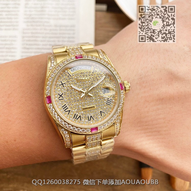 【品牌】劳力士【产品介绍】劳力士ROLEX满天星腕表904精钢打造,密镶顶级施华洛世奇美钻,奢华品质的诠释,璀璨夺目,魅力绽放。表壳表链全镶满美钻,金光闪闪【款式】男款【尺寸】直径36mm【表带】精钢表带【镜面】蓝宝石镜面【机芯】瑞士ETA2836机芯【防水】100米防水【配件】原装盒,说明书,质保卡,吊牌,香港机打发票【品质检测】保证所有手表实物拍摄,所见即所得 , 手表发货前都会有严格检查测试,确保您收到的手表无质量问题