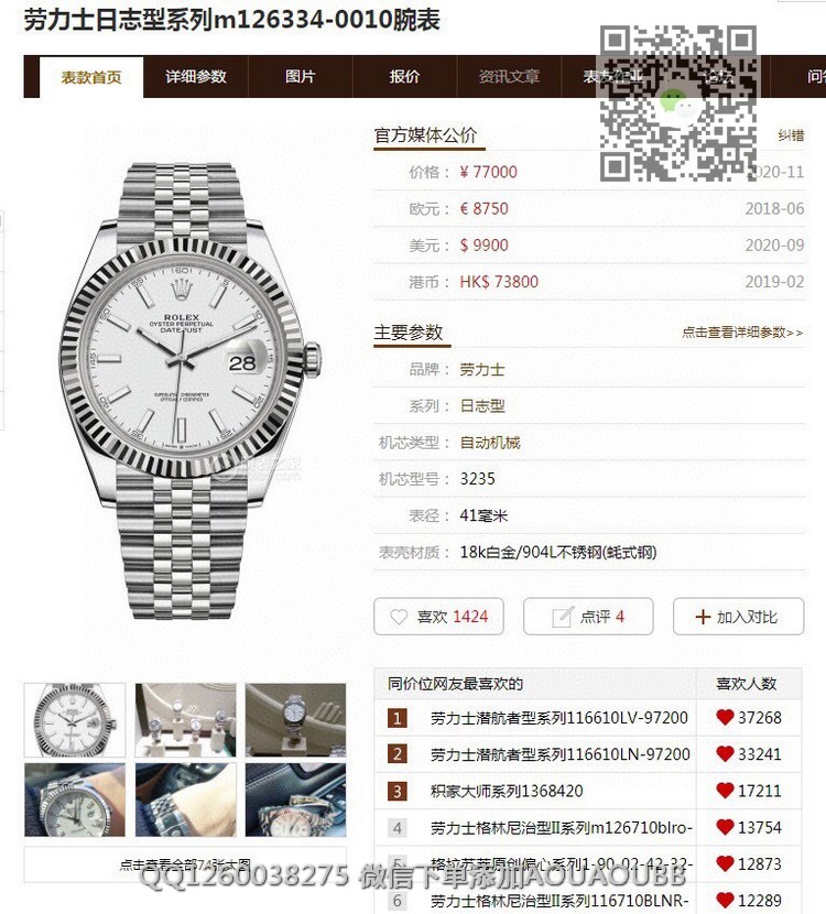 当前位置: 首页 > 劳力士ROLEX > TW出品 劳力士日志型系列m126334-0010男士全机械腕表 瑞士ETA2836-2机芯 尺寸41mm