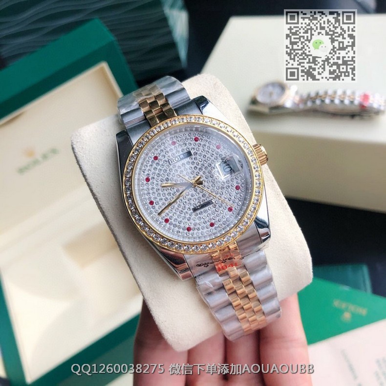 【品牌】劳力士【产品介绍】情侣爆款奢华满钻台湾厂超级版本劳力士日志满天星全新情侣腕表,回馈来袭最新商务劳力士日志型系列强势来袭【机芯】男装搭载全新进口ETA2836机芯,女装搭全新原装6T51机芯走时精准 0返修【表壳】精钢表壳,原版男装36mm尺寸更适合东方男性,配防刮蓝宝石玻璃,读时清晰 28女装尺寸更适合高端独具慧光的女神【表链】精钢五珠表链,搭配原装表扣【字面】劳力仕改装工厂独家设计奢华满天星,镶嵌施华洛世奇水晶钻面,钻丁颗粒匀称,排位细腻【尺寸】男装36mm 女装28mm【表带】精钢表带【镜面】蓝宝石镜面【防水】100米防水【配件】原装盒,说明书,质保卡,吊牌,香港机打发票【品质检测】保证所有手表实物拍摄,所见即所得 , 手表发货前都会有严格检查测试,确保您收到的手表无质量问题