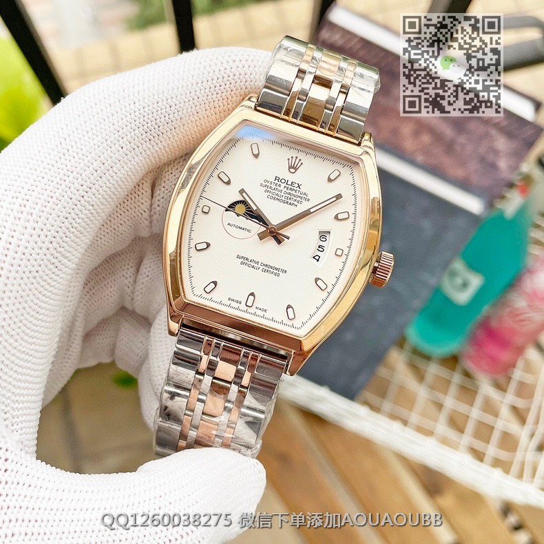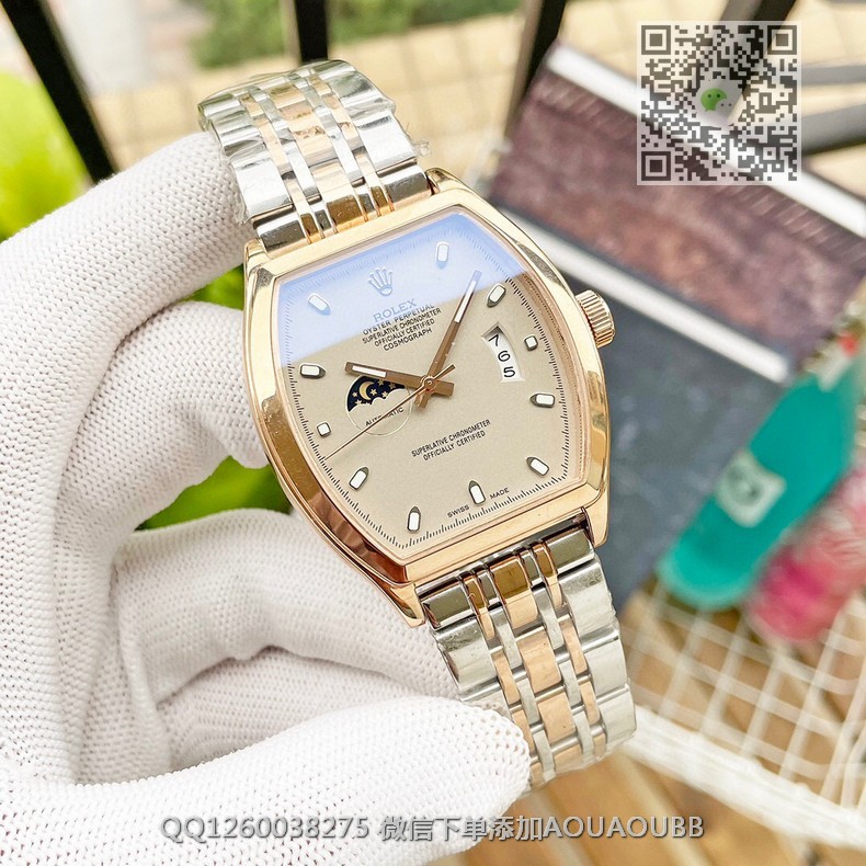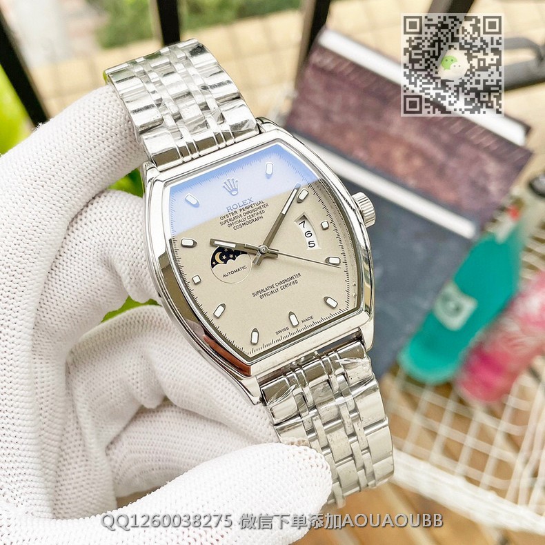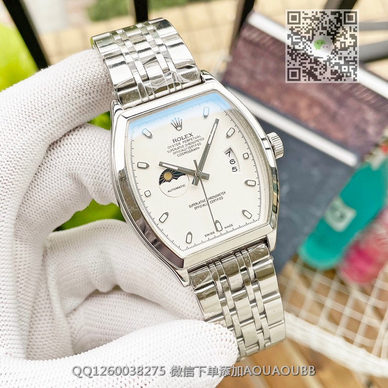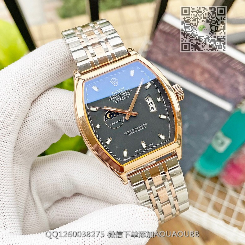 【品牌】劳力士【产品介绍】台湾厂劳力士Rolex 精品男士腕表,独特九字位月相设计,技艺精湛,独具匠心,尊贵大气,绅士风范。【款式】男款【尺寸】直径35mmx46mm【表带】精钢表带/意大利牛皮表带【镜面】蓝宝石镜面【机芯】瑞士ETA全自动机芯【防水】50米防水【配件】原装盒,说明书,质保卡,吊牌,香港机打发票【品质检测】保证所有手表实物拍摄,所见即所得 , 手表发货前都会有严格检查测试,确保您收到的手表无质量问题