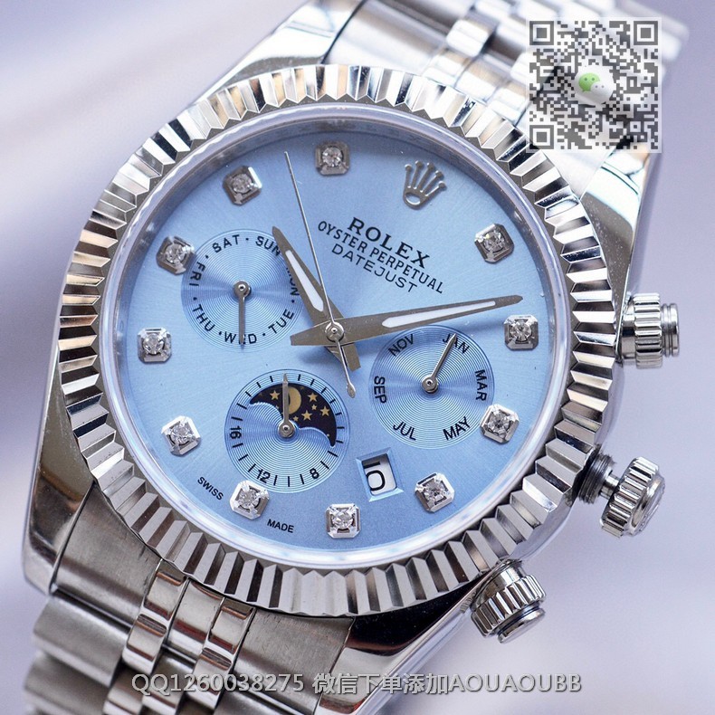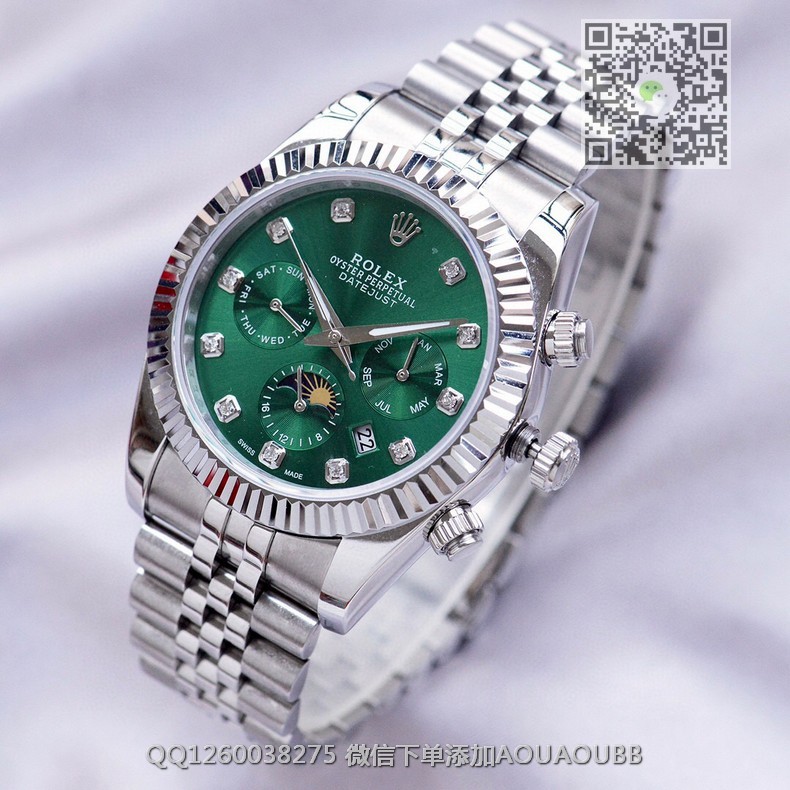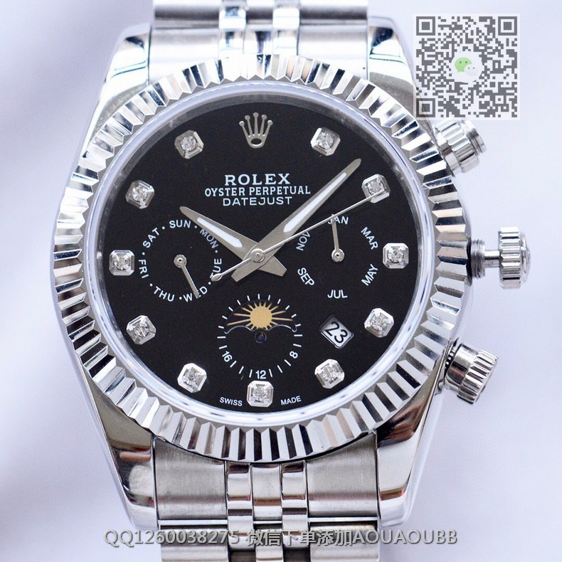 【品牌】劳力士【产品介绍】最高版本劳力士复杂系列六针男表爆款多功能腕表。搭载原装进口9100星期月份月相动能功能机芯机械表!表盘上采用经典独家内影夜光罗马作为刻度更显示出这款腕表的华贵气质表带采用进口904钢带腕表!表镜采用双卜蓝宝石镜面!透视底盖!腕表功能汇集星期/月份/日期等功能于一身,最佳男士商务腕表真正的标配!为高端腕表的代表之作!荣誉出品尊贵彰显之美誉细节之处透露男士高贵,品位十分,匠心巨制大气媲美原装货!实物拍摄品质如一!【款式】男款【尺寸】直径41毫米,厚度11毫米【表带】精钢表带【镜面】蓝宝石镜面【机芯】原装进口9100全自动机芯【防水】50米防水【配件】原装盒,说明书,质保卡,吊牌,香港机打发票【品质检测】保证所有手表实物拍摄,所见即所得 , 手表发货前都会有严格检查测试,确保您收到的手表无质量问题