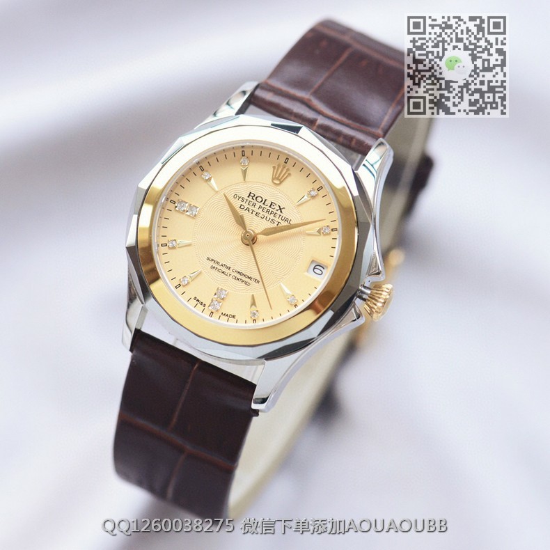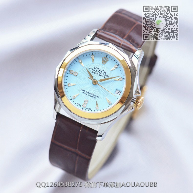 【品牌】劳力士【产品介绍】高端精品劳力士日志型系列女士全自动机械腕表【款式】女款【尺寸】34mmx10mm【表带】意大利牛皮表带【镜面】蓝宝石镜面【机芯】瑞士ETA全自动机芯【防水】50米防水【配件】原装盒,说明书,质保卡,吊牌,香港机打发票【品质检测】保证所有手表实物拍摄,所见即所得 , 手表发货前都会有严格检查测试,确保您收到的手表无质量问题