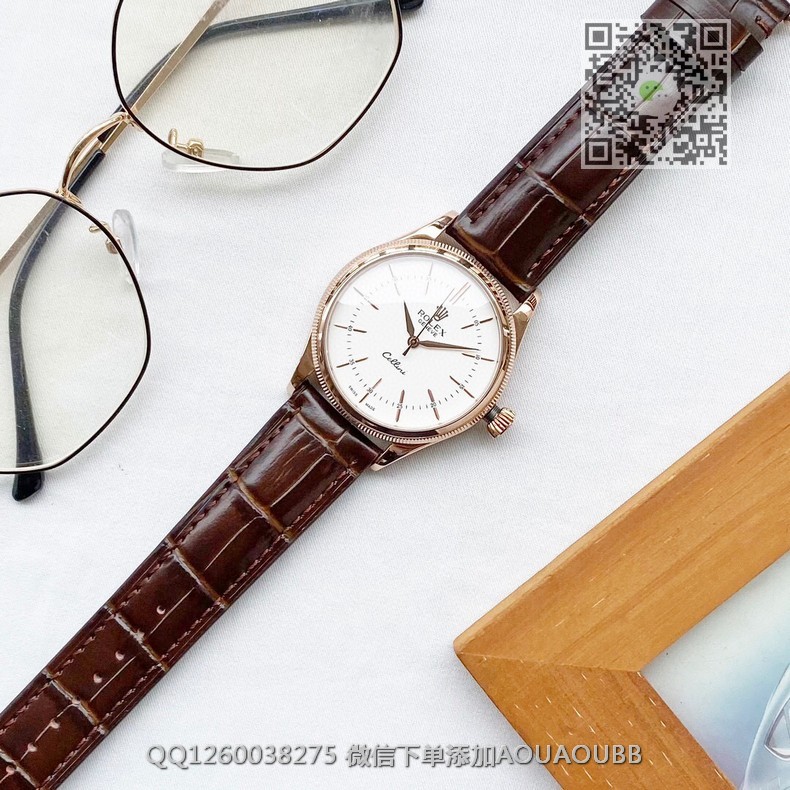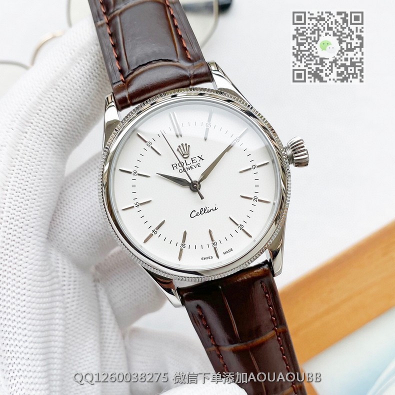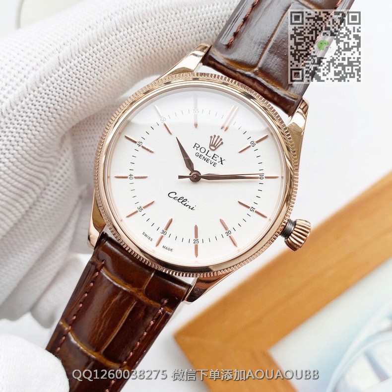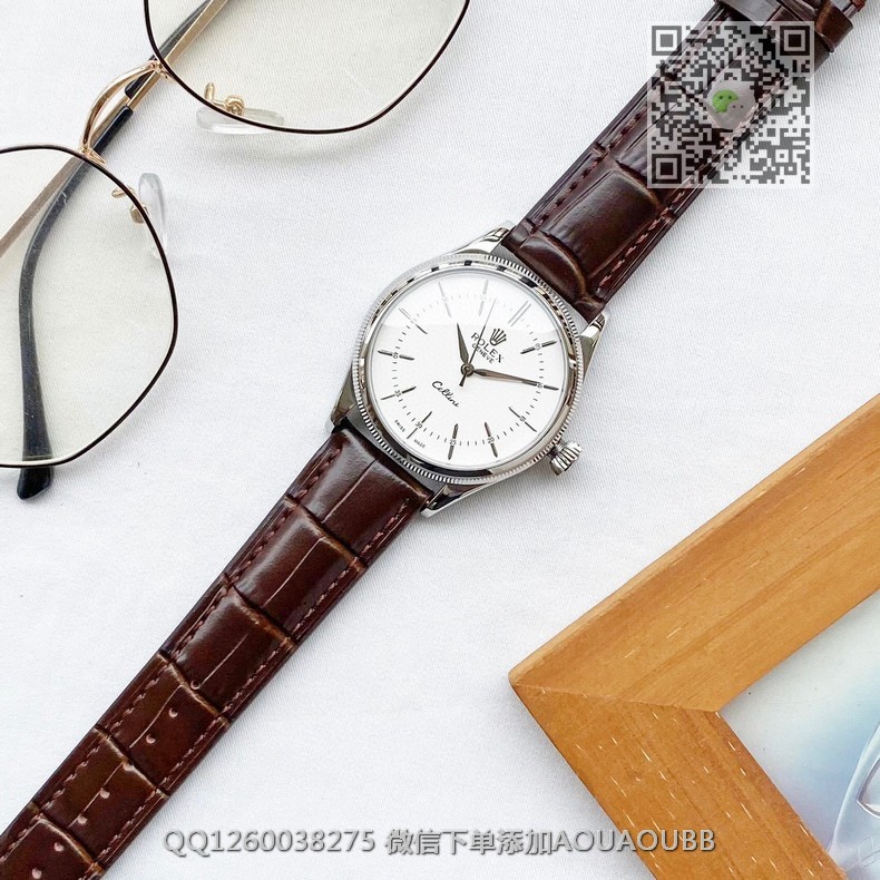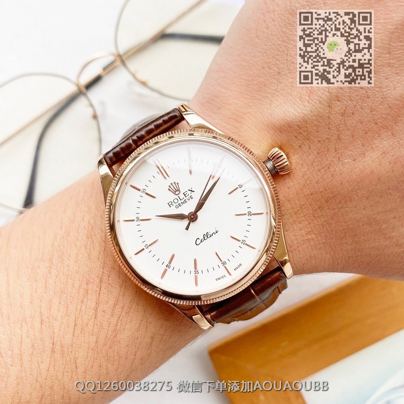 【品牌】劳力士【产品介绍】劳力士-ROLEX切利尼系列男士机械腕表经典正装表 精钢壳套三角坑纹双外圈【款式】男款【尺寸】直径39mm【表带】意大利牛皮表带【镜面】蓝宝石镜面【机芯】瑞士ETA2824机芯【防水】50米防水【配件】原装盒,说明书,质保卡,吊牌,香港机打发票【品质检测】保证所有手表实物拍摄,所见即所得 , 手表发货前都会有严格检查测试,确保您收到的手表无质量问题