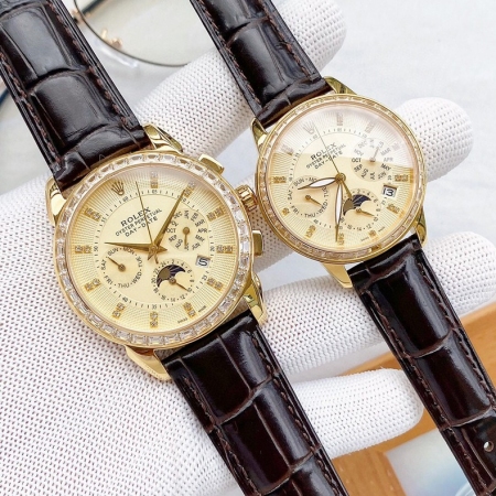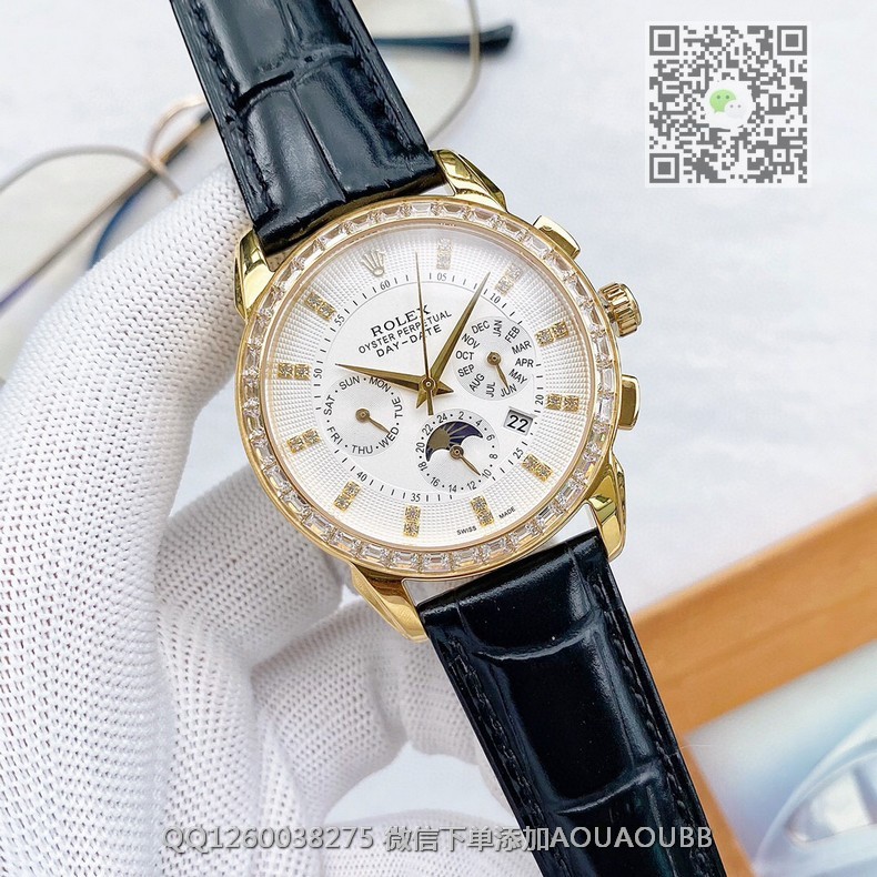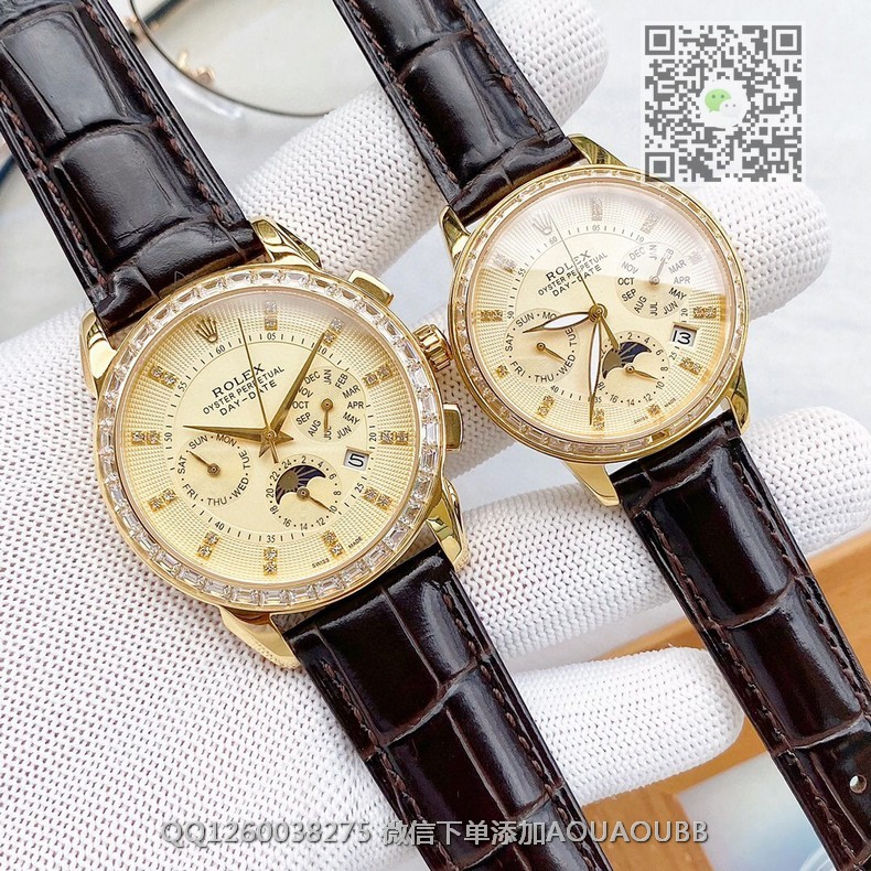 【品牌】劳力士【产品介绍】劳力士复杂功能计时系列上市 ROLEX 情侣对表!小红书爆款多功能鑫腕表正式上市!搭载原装进口9100月相功能机芯机械表走时精准零返修!表盘上采用罗马施华洛水钻作为刻度更显示出这款腕表的华贵气质!皮带采用进口方形鳞纹牛皮表带,表镜采用蓝宝石镜面,透视底盖!直径男款41毫米,厚度10毫米,女款35毫米,厚度10毫米!腕表功能汇集星期/月份/日期等功能于一身,最佳男女腕表真正的富家女标配!为高端腕表的代表之作尊贵彰显之美誉细节之处透露女士高贵,品位十分!实物拍摄品质如一!【款式】男款/女款【尺寸】男士41mmx11mm/女士35mmx11mm【表带】精钢表带【镜面】蓝宝石镜面【机芯】原装进口9100全自动机芯【防水】50米防水【配件】原装盒,说明书,质保卡,吊牌,香港机打发票【品质检测】保证所有手表实物拍摄,所见即所得 , 手表发货前都会有严格检查测试,确保您收到的手表无质量问题