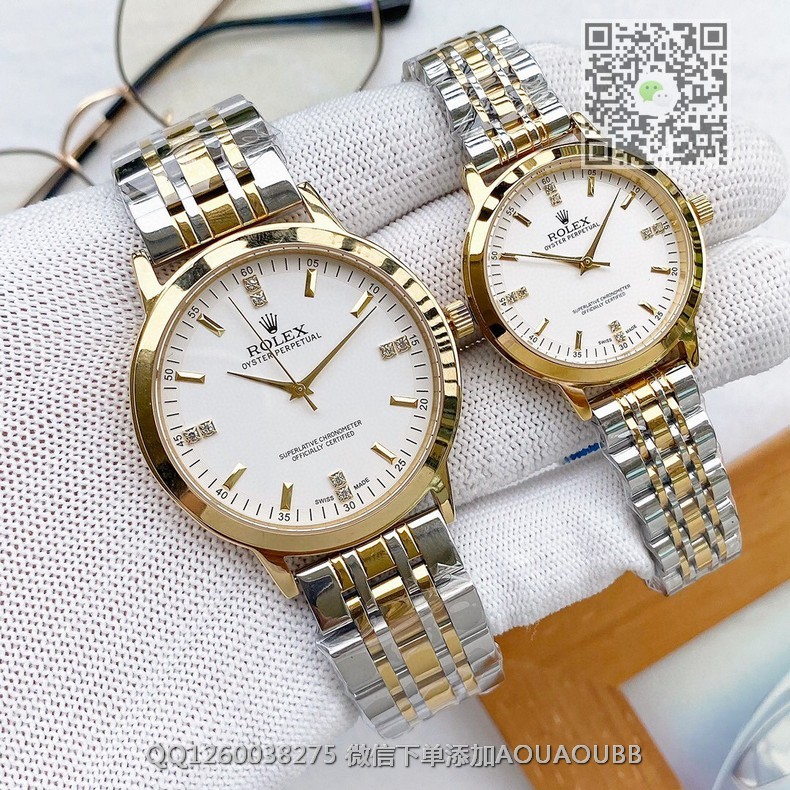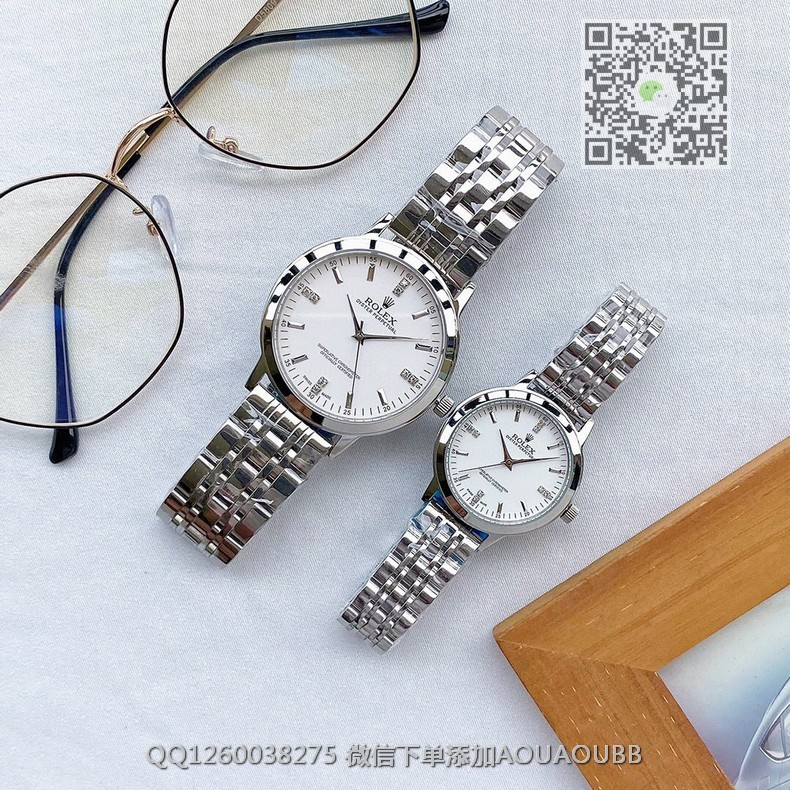【品牌】劳力士【产品介绍】劳力士经典系列简约两针情侣对表【款式】男款/女款【尺寸】男士39x8mm/女士29x8mm【表带】精钢表带【镜面】蓝宝石镜面【机芯】瑞士石英机芯【防水】50米防水【配件】原装盒,说明书,质保卡,吊牌,香港机打发票【品质检测】保证所有手表实物拍摄,所见即所得 , 手表发货前都会有严格检查测试,确保您收到的手表无质量问题