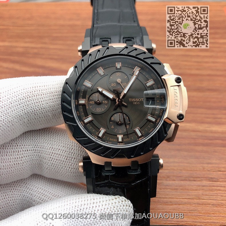 TISSOT 天梭竞速最新系列 配置316精钢鑫表壳+蓝宝石玻璃+进口硅胶带配备原装针扣采用进口多功能石英计时码机芯