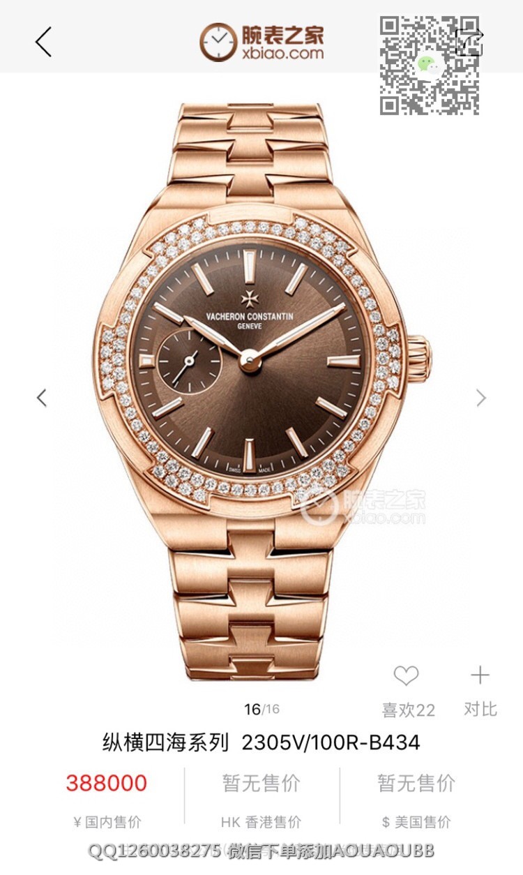 > 江诗丹顿V.Constan > 8F出品 Vacheron Constantin江诗丹顿纵横四海系列2300v/2305v OVERSEAS女款小号型v2版钢带款 搭载Cal.5300机芯(机芯稳定零返修 )后原装18k纳米镀金质摆陀 表径36×10.8mm 同步原装 【品牌】江诗丹顿【产品介绍】8F顶级大厂出品,Vacheron Constantin江诗丹顿纵横四海系列OVERSEAS女款小号型v2版钢带款日内瓦国际高级钟表沙龙上江诗丹顿推出全新Overseas纵横四海小型号腕表,该腕表精致优雅、璀璨夺目,是一款极具魅力和旅行精神的经典时计。【型号】2300v/2305v【款式】女款【表壳】表径36×10.8mm 同步原装 84颗圆形切割施华洛水钻璀璨夺目 蓝宝石镜面永不刮花【字面】表盘经旭日纹缎面拉丝工艺处理深邃优雅 18k金时标均带白色夜光涂层【机芯】进口CITIZEN8系列改Cal.5300机芯(机芯稳定零返修)后原装18k纳米镀金质摆陀 复刻正品一样机型收起【表带】精钢表带【镜面】蓝宝石镜面【防水】50米【配件】原装盒,说明书,质保卡,吊牌,香港机打发票【品质检测】保证所有手表实物拍摄,所见即所得 , 手表发货前都会有严格检查测试,确保您收到的手表无质量问题