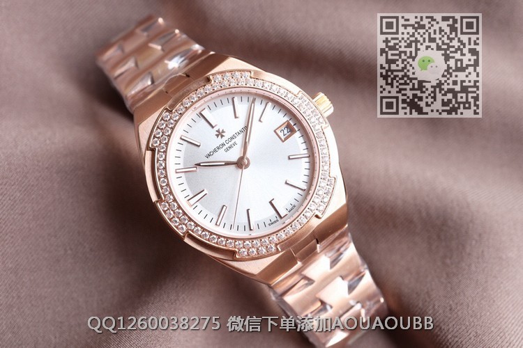 > 江诗丹顿V.Constan > 8F出品 Vacheron Constantin江诗丹顿纵横四海系列2300v/2305v OVERSEAS女款小号型v2版钢带款 搭载Cal.5300机芯(机芯稳定零返修 )后原装18k纳米镀金质摆陀 表径36×10.8mm 同步原装 【品牌】江诗丹顿【产品介绍】8F顶级大厂出品,Vacheron Constantin江诗丹顿纵横四海系列OVERSEAS女款小号型v2版钢带款日内瓦国际高级钟表沙龙上江诗丹顿推出全新Overseas纵横四海小型号腕表,该腕表精致优雅、璀璨夺目,是一款极具魅力和旅行精神的经典时计。【款式】女款【表壳】表径36×10.8mm 同步原装 84颗圆形切割施华洛水钻璀璨夺目 蓝宝石镜面永不刮花【字面】表盘经旭日纹缎面拉丝工艺处理深邃优雅 18k金时标均带白色夜光涂层【机芯】进口CITIZEN8系列改Cal.5300机芯(机芯稳定零返修)后原装18k纳米镀金质摆陀 复刻正品一样机型收起【表带】精钢表带【镜面】蓝宝石镜面【防水】50米【配件】原装盒,说明书,质保卡,吊牌,香港机打发票【品质检测】保证所有手表实物拍摄,所见即所得 , 手表发货前都会有严格检查测试,确保您收到的手表无质量问题
