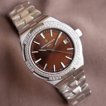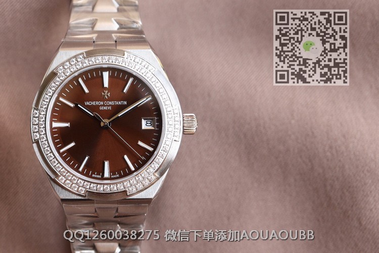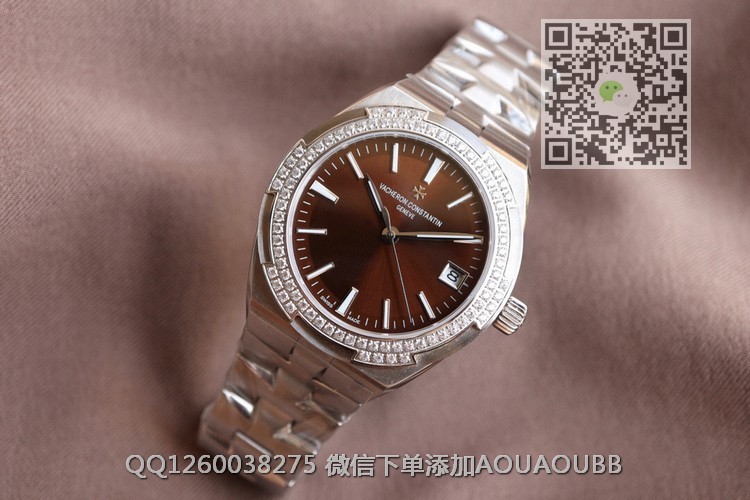 > 江诗丹顿V.Constan > 8F出品 Vacheron Constantin江诗丹顿纵横四海系列2300v/2305v OVERSEAS女款小号型v2版钢带款 搭载Cal.5300机芯(机芯稳定零返修 )后原装18k纳米镀金质摆陀 表径36×10.8mm 同步原装 【品牌】江诗丹顿【产品介绍】8F顶级大厂出品,Vacheron Constantin江诗丹顿纵横四海系列OVERSEAS女款小号型v2版钢带款日内瓦国际高级钟表沙龙上江诗丹顿推出全新Overseas纵横四海小型号腕表,该腕表精致优雅、璀璨夺目,是一款极具魅力和旅行精神的经典时计。【款式】女款【表壳】表径36×10.8mm 同步原装 84颗圆形切割施华洛水钻璀璨夺目 蓝宝石镜面永不刮花【字面】表盘经旭日纹缎面拉丝工艺处理深邃优雅 18k金时标均带白色夜光涂层【机芯】进口CITIZEN8系列改Cal.5300机芯(机芯稳定零返修)后原装18k纳米镀金质摆陀 复刻正品一样机型收起【表带】精钢表带【镜面】蓝宝石镜面【防水】50米【配件】原装盒,说明书,质保卡,吊牌,香港机打发票【品质检测】保证所有手表实物拍摄,所见即所得 , 手表发货前都会有严格检查测试,确保您收到的手表无质量问题
