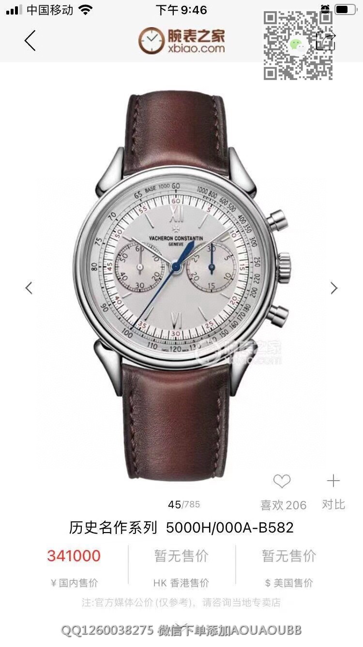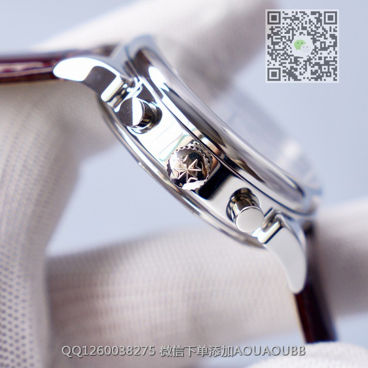 > 江诗丹顿V.Constan > TWS出品 江诗丹顿历史名作系列5000H/000A-B582男士全自动机械腕表 采用定制版VC—CAL.1142型机芯,还原小时,分钟,秒针,计时码表 【表壳】直径41MM,厚度11MM 【品牌】江诗丹顿【款式】男款【产品介绍】TWS Factory2021新力作V2升级版江诗丹顿 HISTORIQUES历史名作牛角1955系列腕表!【表壳】直径41MM,厚度11MM!条钉和表针均有进行打磨抛光,并且运用镀铑(18K贵金属)工艺处理,确保用不掉色,光泽如炬蓝宝石水晶玻璃镀防眩晕镀膜316L进口精钢打磨,同时保留了古典的圆形双按钮和“牛角形”表耳的外观,呈现了至臻的江诗丹顿风范【机芯】采用定制版VC—CAL.1142型机芯,还原小时,分钟,秒针,计时码表,累计半小时计时全部功能【表带】意大利牛皮表带【防水】50米【配件】原装盒,说明书,质保卡,吊牌,香港机打发票【品质检测】保证所有手表实物拍摄,所见即所得 , 手表发货前都会有严格检查测试,确保您收到的手表无质量问题