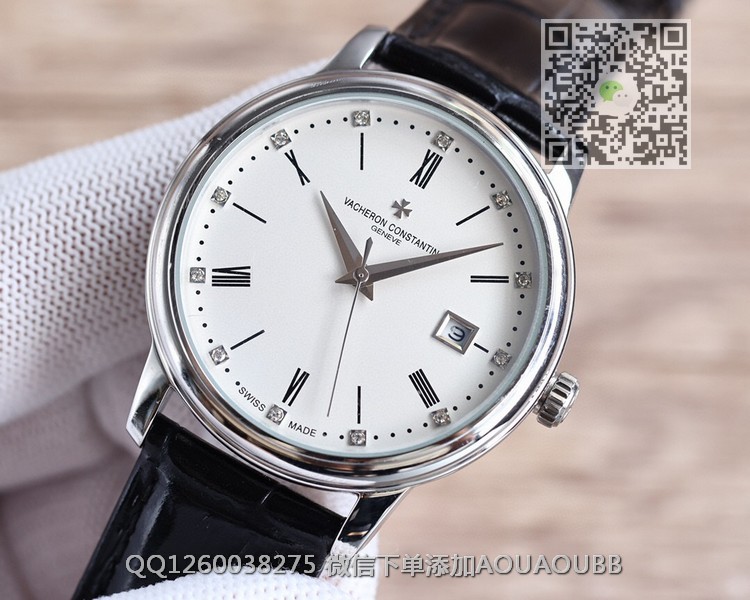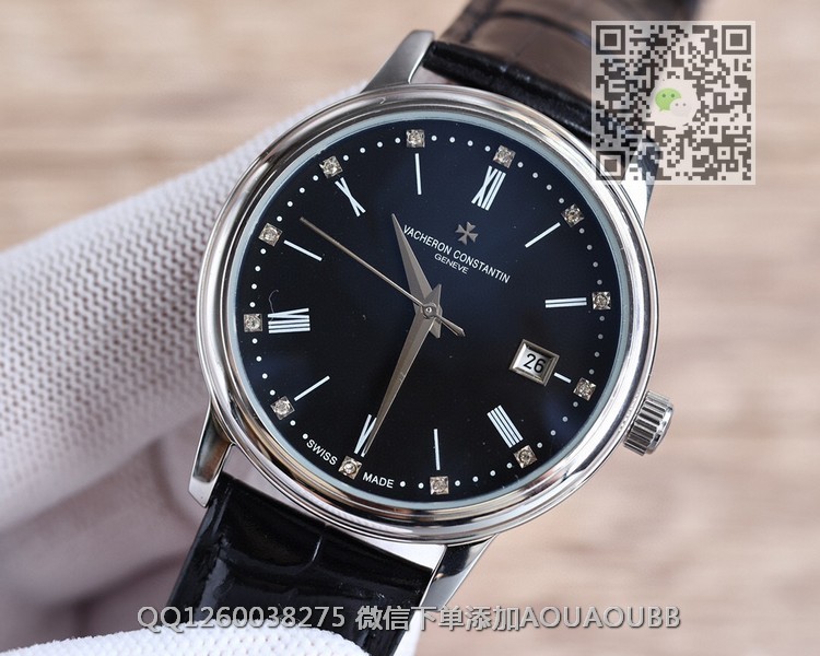 【品牌】江诗丹顿【产品介绍】江诗丹顿Vacheron Constanti高雅品位热卖爆款新品手表脱俗气质简约大方设计,应对任何场合都有强大的气场实物动人经典永恒 卓越品质【款式】男款【尺寸】40mmx10mm【表带】意大利牛皮表带【机芯】瑞士ETA全自动机械机芯【防水】50米【配件】原装盒,说明书,质保卡,吊牌,香港机打发票【品质检测】保证所有手表实物拍摄,所见即所得 , 手表发货前都会有严格检查测试,确保您收到的手表无质量问题