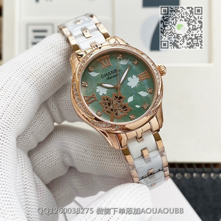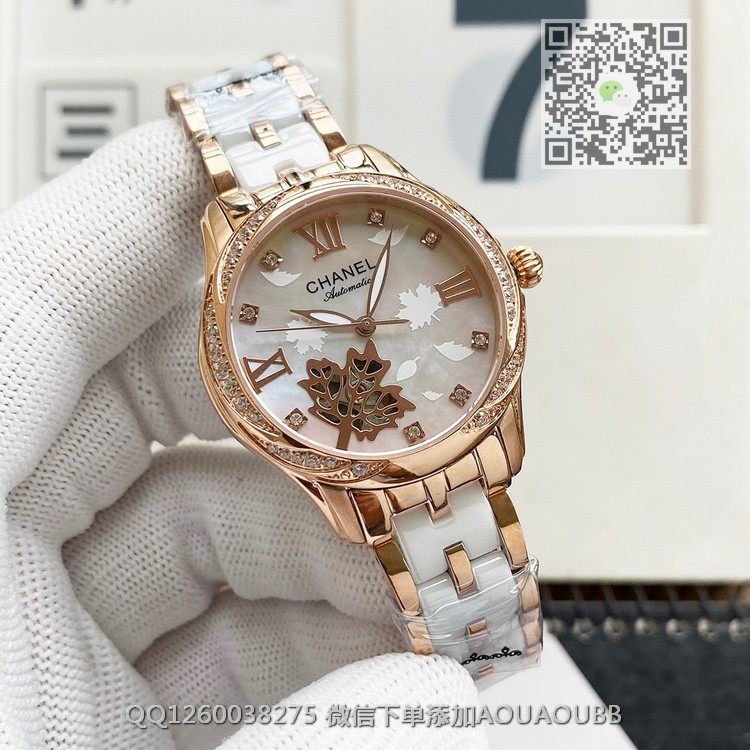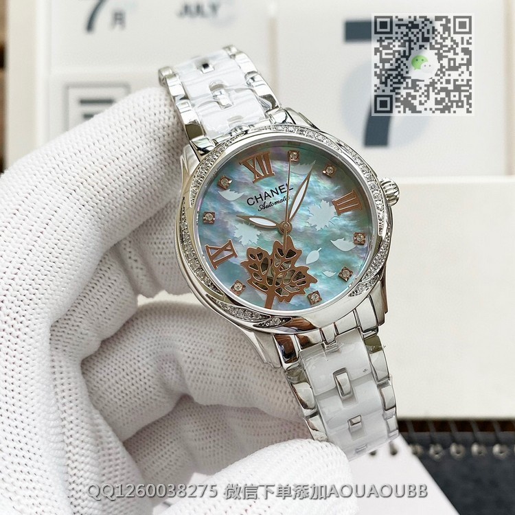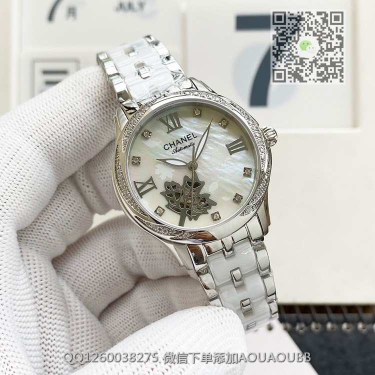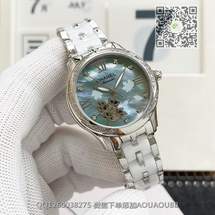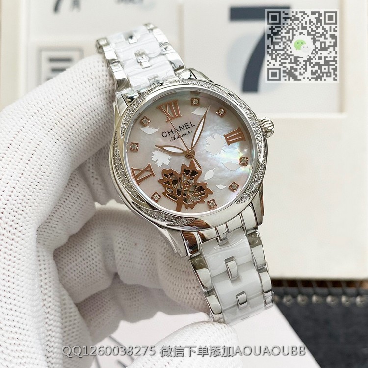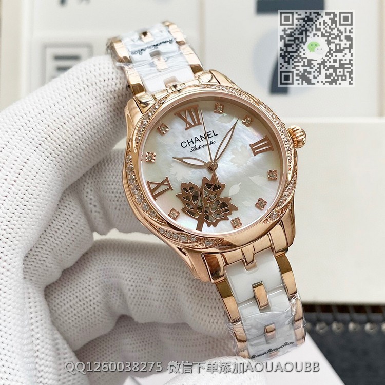 【品牌】香奈儿【产品介绍】时尚机械女款香奈儿顶级机械女表原装进口机械机芯,珍珠贝母表盘双卜蓝宝石玻璃镜面,深度防水,316精钢间韩国骊州陶瓷。还有皮带可供选择。极尽奢华质量倾城无懈可击【款式】女款【尺寸】直径35mm【表带】间陶瓷精钢表带【镜面】蓝宝石镜面【机芯】原装进口82S7全自动机芯【防水】50米【配件】原装盒,说明书,质保卡,吊牌,香港机打发票【品质检测】保证所有手表实物拍摄,所见即所得 , 手表发货前都会有严格检查测试,确保您收到的手表无质量问题