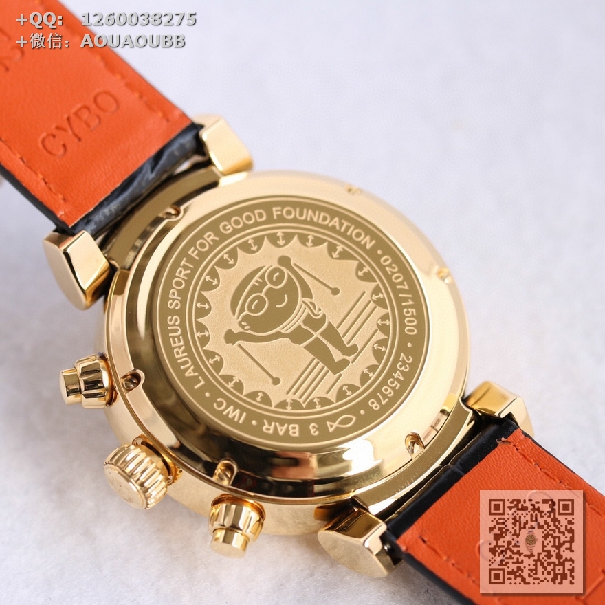 【产品介绍】新品 IWC 万国 Laureus Sport For Good Foundation 限量腕表这是 IWC 的第11枚「劳伦斯体育公益基金会」特别版腕表,采用简洁的计时码表布局。42mm精钢表壳,厚度 14.5mm,蓝宝石水晶表镜 摆频28800次/时,精钢防水50米。 12点位置为分钟计时盘,读取计时信息如同阅读时间一样轻松,6点为小秒盘和日历窗,自动上链机芯