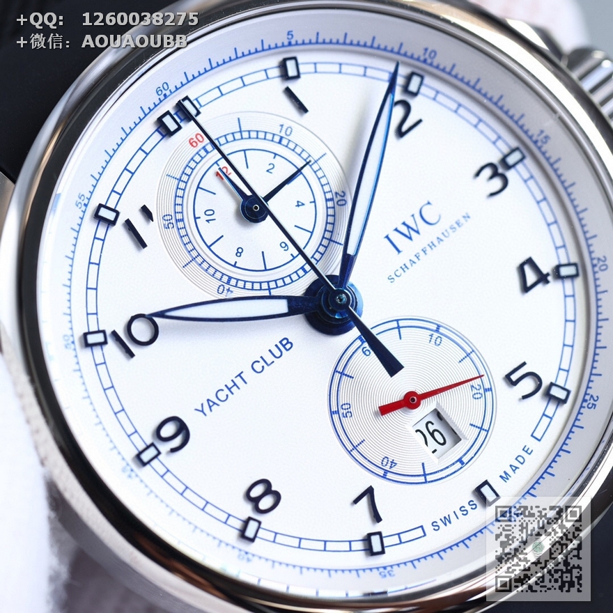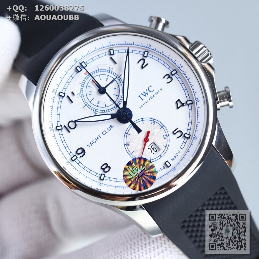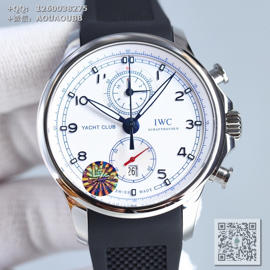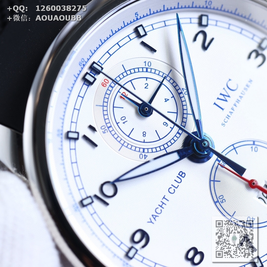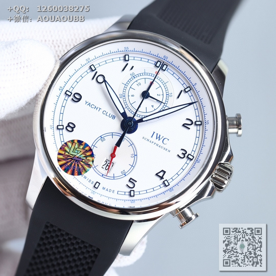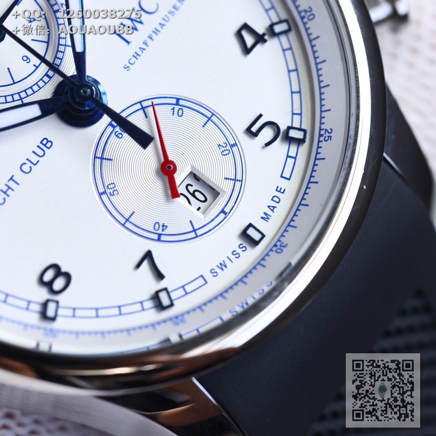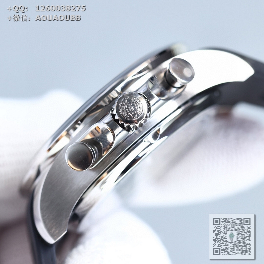 【产品介绍】终极版 IWC 万国葡萄牙系列 IW390704直径45x14.5 搭载Cal.89361计时机芯超强夜光。终极修改 1.双面凸起蓝宝石水晶玻璃 2.表壳CNC顶级工艺多道工序打磨抛光,线条清晰流畅3.表带升级进口橡胶表带无异味不沾尘不发白 4.升级表扣为原厂地球长扣 5.字面校准光泽细节更接近正品。用心打造只为媲美专柜