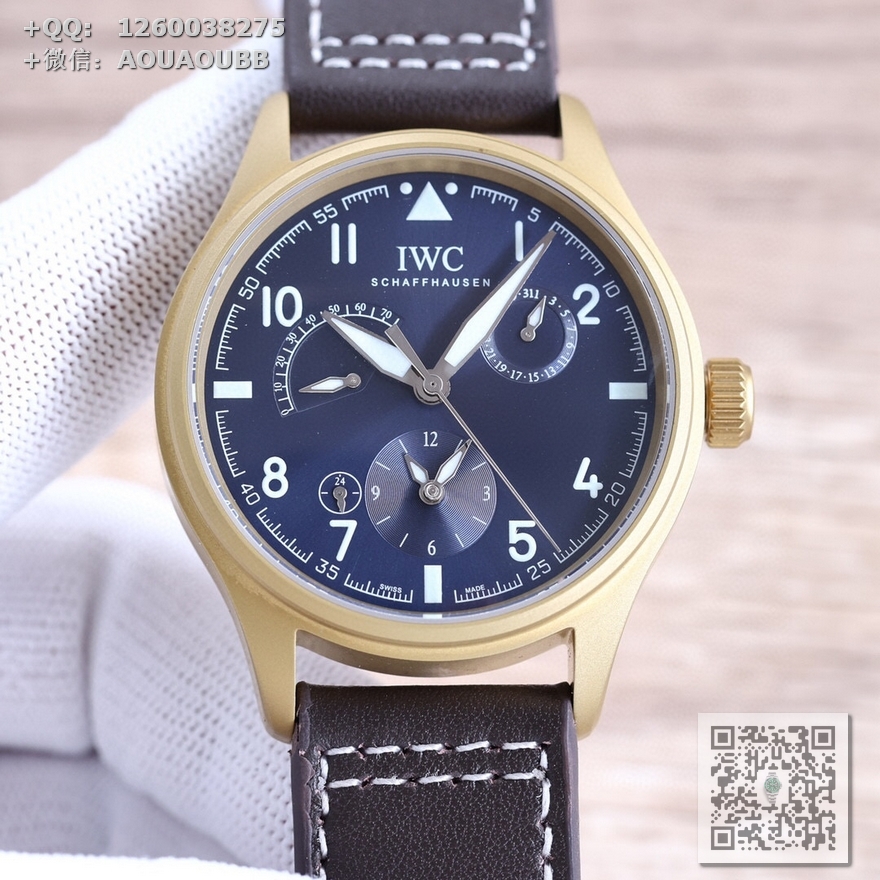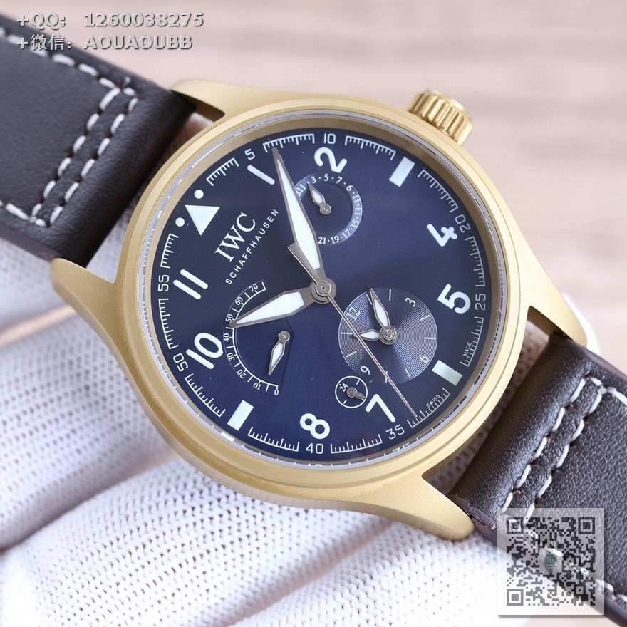 MKS新品上市 IWC万国表飞行员系列复古(青铜)男士全自动机械腕表 2点位置日历显示6点位置第二时区显示10点位置动力储能显示 直径42mm