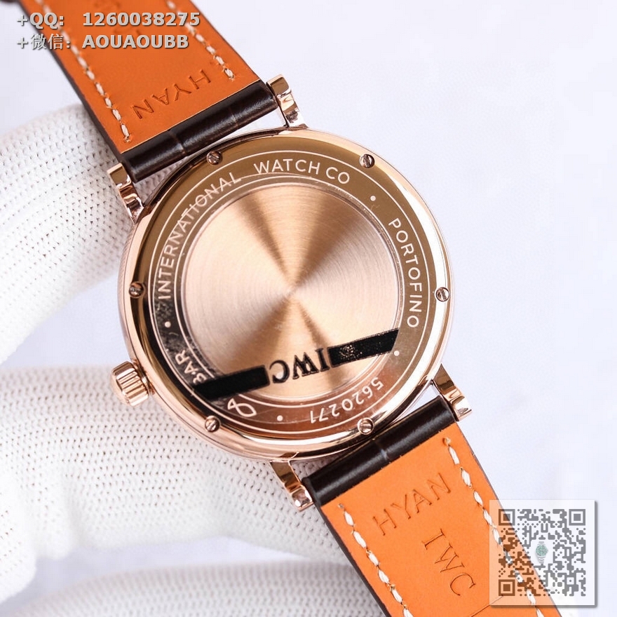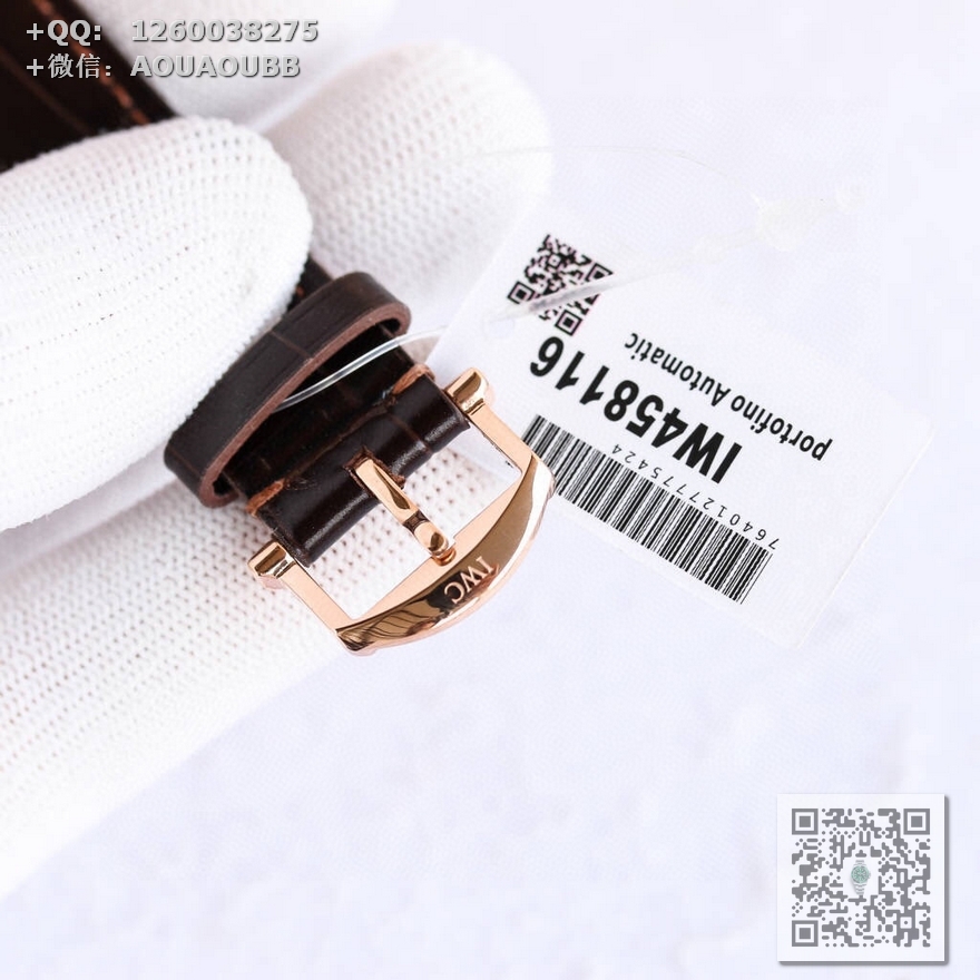 【表带表扣】采用顶级意大利小皮材质表带,质地柔软细腻,手工缝制的丝线,纹路清晰,均匀规整。表扣上面刻有“IWC”万国的经典标志,大方富有档次,做工同步原装。