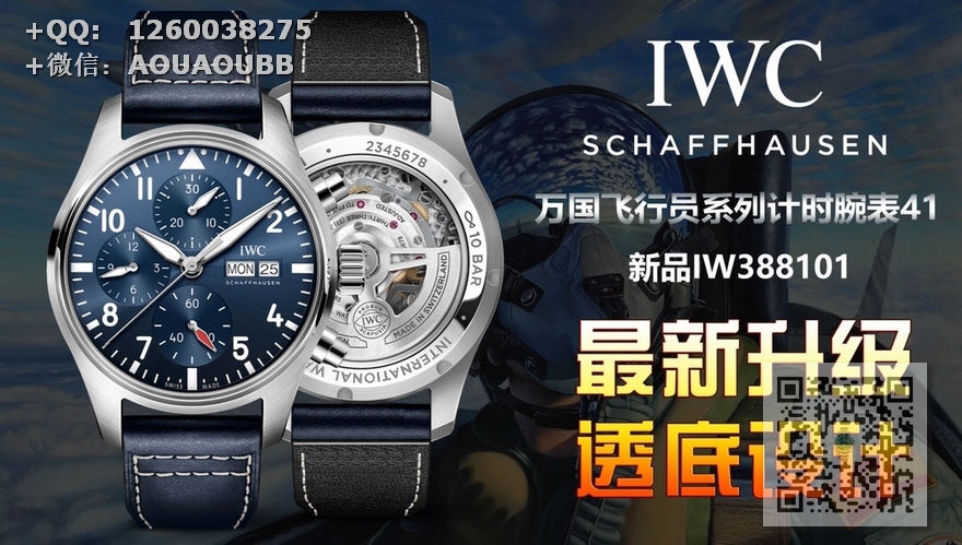 【品牌】万国【款式】男款">男款【产品介绍】ZF匠心新品巨作 IWC万国飞行员新款IW388101/IW388103,腕表采用精钢材质表壳,做工成熟,线条清晰而富有立体感,颜色搭配和谐,非常百搭。与之前的飞行员相比,新款时计尺寸缩小到41尺寸,更加符合现代男表的黄金尺寸,表盘设计延续飞行员经典的驾驶舱仪表盘风格,全新透底设计采用7750改自产69385型自动上链机械机芯,上满链后能为腕表提供46小时动力储存,双层浅蓝色防眩晕镀膜更能清楚的读时,延续的前作的经典外观蓝色与绿色作为今年的大热门,绝对是最具万国气质的腕表【尺寸】直径41mm【表带】意大利牛皮表带【镜面】蓝宝石镜面【机芯】7750改自产69385型自动上链机械机芯【防水】50米【配件】原装盒,说明书,质保卡,吊牌,香港机打发票【品质检测】保证所有手表实物拍摄,所见即所得 , 手表发货前都会有严格检查测试,确保您收到的手表无质量问题