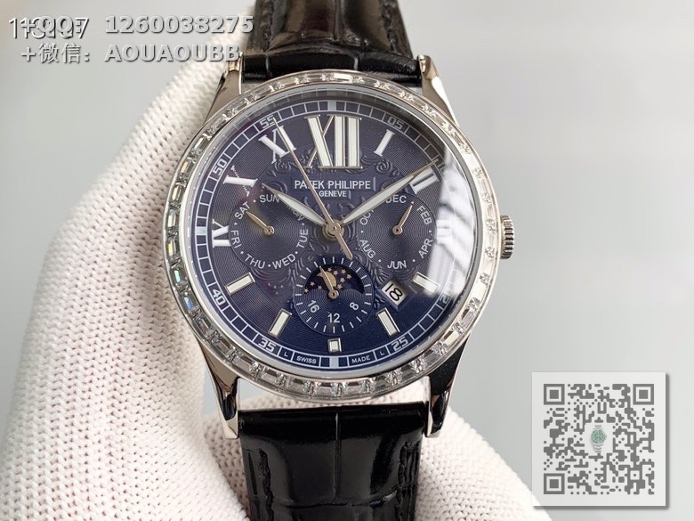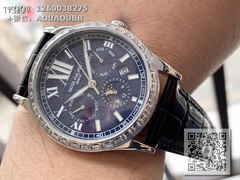 【品牌】百达翡丽【产品介绍】最高版本 百达翡丽Patek Philippe 复杂系列六针男表爆款 多功能腕表!搭载原装进口9100星期月份月相动能功能机芯机械表!表盘上采用经典独家内影夜光罗马 作为刻度更显示出这款腕表的华贵气质皮带采用进口方形鳞纹牛皮表带!表镜采用双卜蓝宝石镜面!透视底盖!直径41毫米,厚度10毫米!腕表功能汇集星期/月份/日期等功能于一身,最佳男士商务腕表真正的标配!为高端腕表的代表之作!荣誉出品 尊贵彰显之美誉细节之处透露男士高贵,品位十分,匠心巨制 大气媲美原装货!表里如一 独具匠心!️请认准独家品质。【款式】男款【尺寸】直径41mm【表带】意大利牛皮表带【镜面】蓝宝石镜面【机芯】原装进口9100全自动机芯【防水】50米【配件】原装盒,说明书,质保卡,吊牌,香港机打发票【品质检测】保证所有手表实物拍摄,所见即所得 , 手表发货前都会有严格检查测试,确保您收到的手表无质量问题