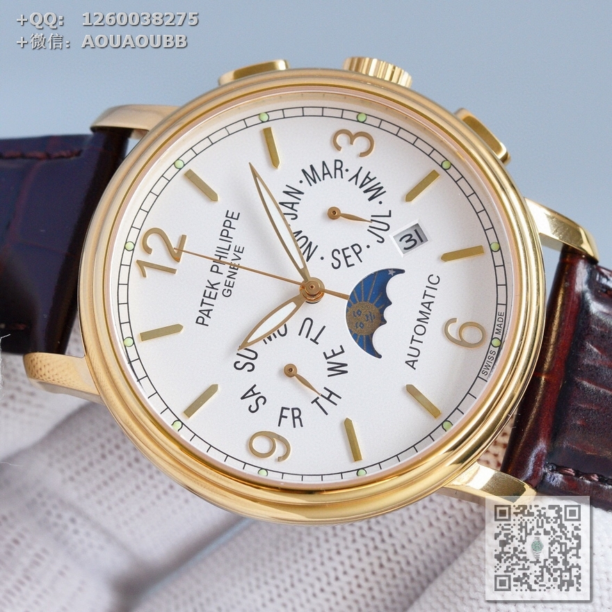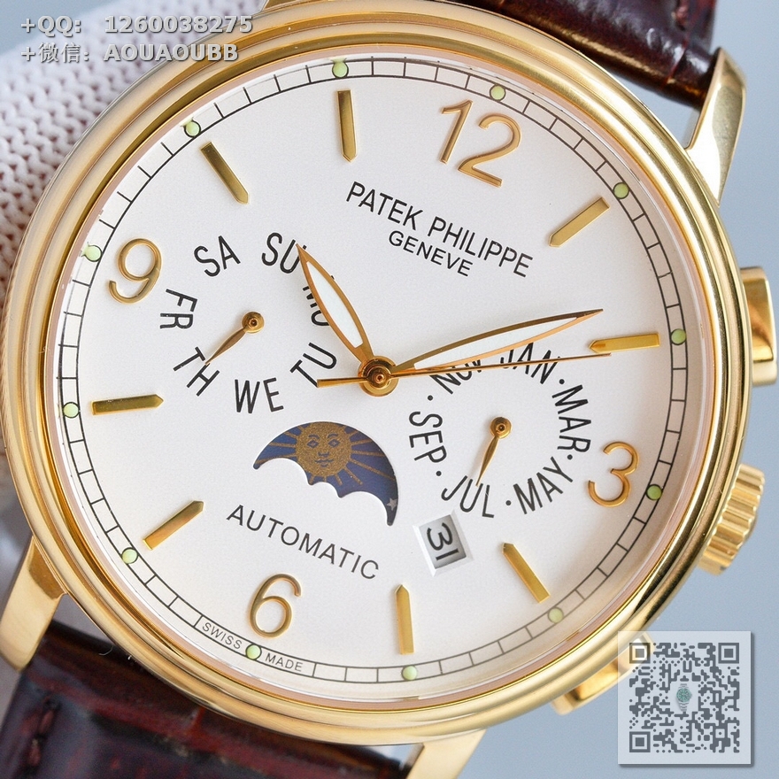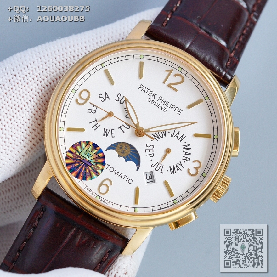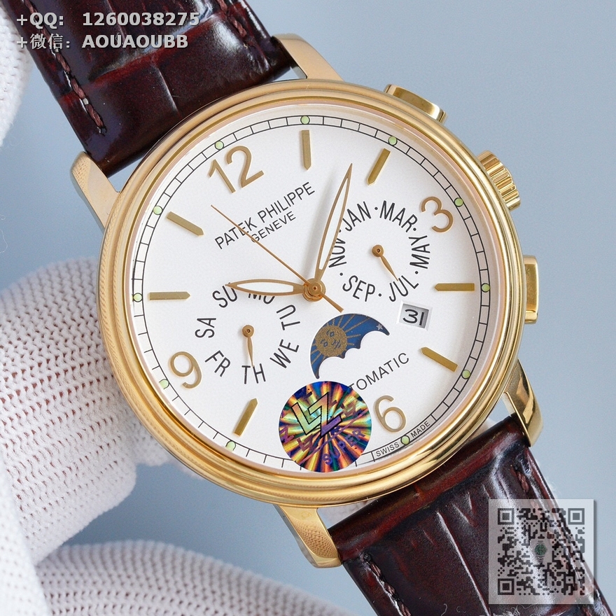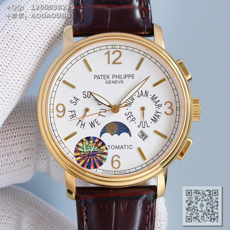 > 百达翡丽Patek Philippe > MK出品 百达翡丽复杂功能时计系列月相多功能男士全自动机械腕表 原装进口9100机芯 直径42mmx11mm 一款集星期,日历,月相,星辰,夜光于一身的腕表 【品牌】百达翡丽