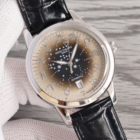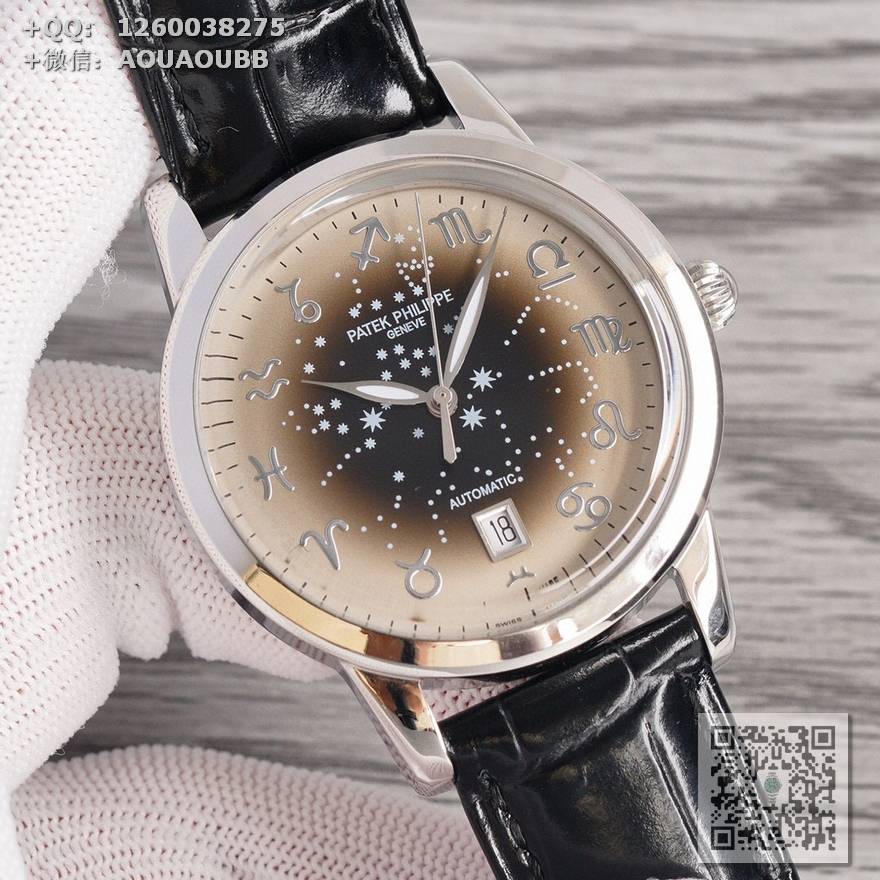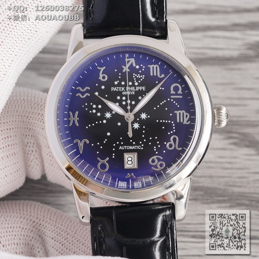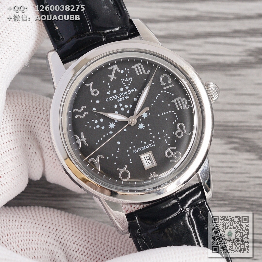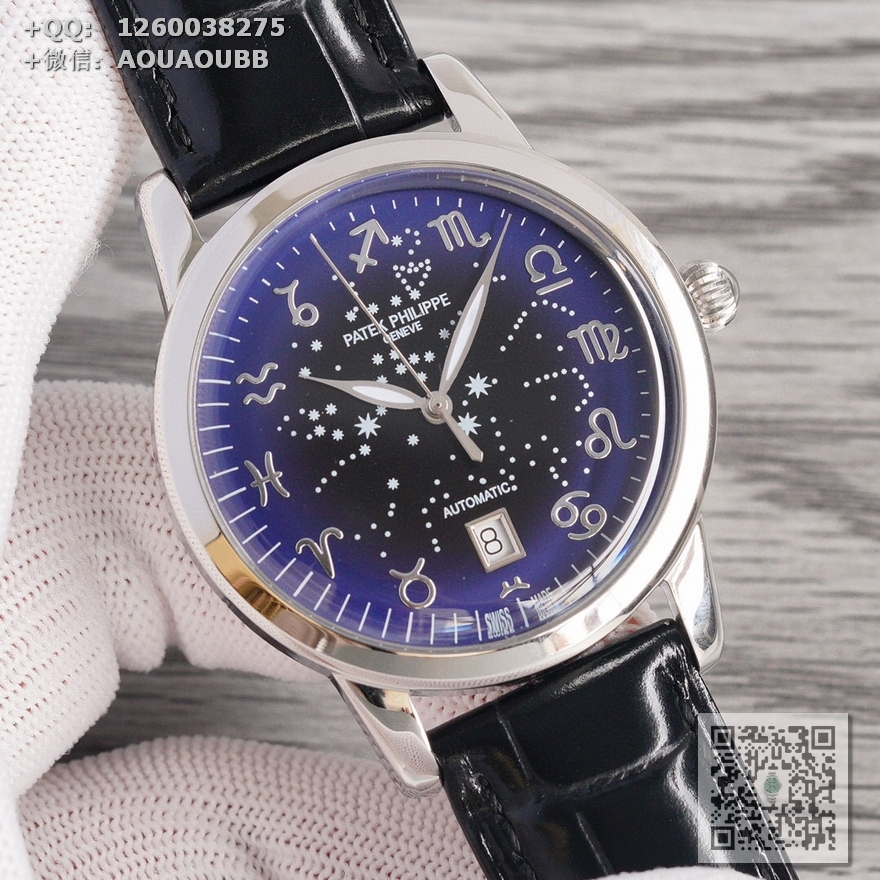 【产品介绍】原版开模 百达翡丽 PP 银河系列 耗时长达八个月!超薄男士自动机械腕表,采用进口原装9015机芯,每小时振频28800次,零返修质量,直径40mm原装尺寸,超薄工艺8mm,采用意大利进口小牛皮!锅盖玻璃材质!超强防水50米,“镜面超强夜光效果”!带上他锋芒尽显,气派不凡!耀眼光辉,永恒尊贵。大厂品质!