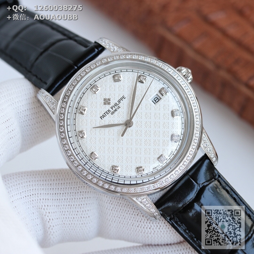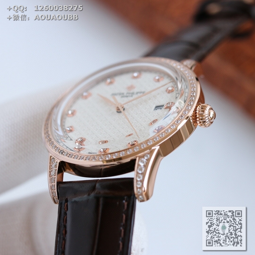 【产品介绍】新款满砖壳百达翡丽,火热新款式,百达翡丽新款锅盖,耗时长达6个月!超薄男士自动机械腕表,采用进口原装9015机芯,每小时振频28800次,零返修质量,直径40mm原装尺寸,超薄工艺8mm,(可搭配采用鑫意大利进口小牛皮!)锅盖玻璃材质!超强防水50米!专柜同款,一比一复刻!带上他锋芒尽显,气派不凡!耀眼光辉,永恒尊贵。️请认准独家品质
