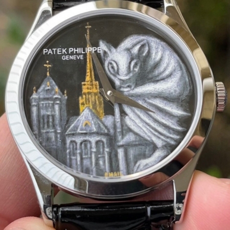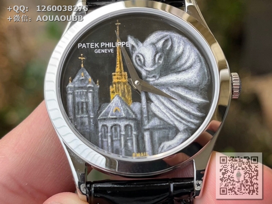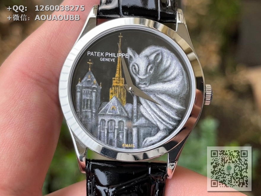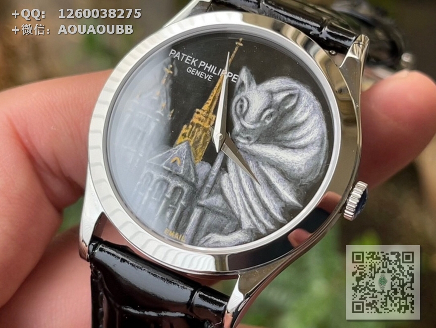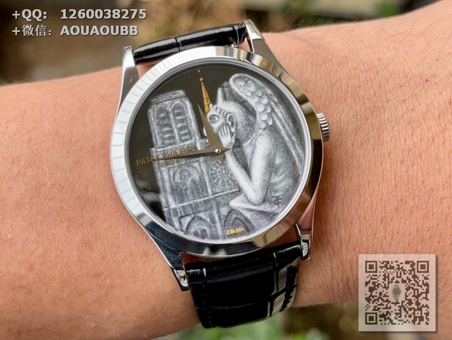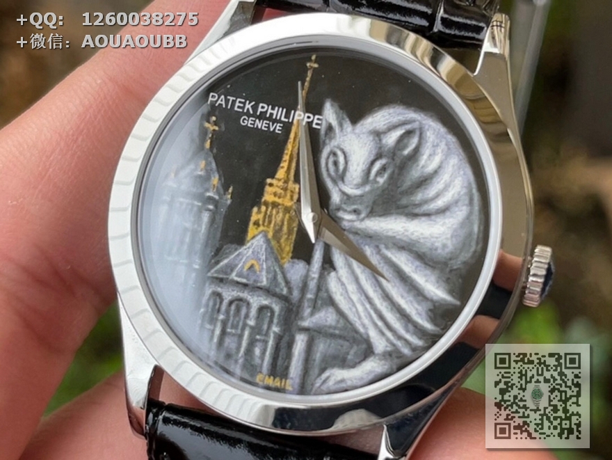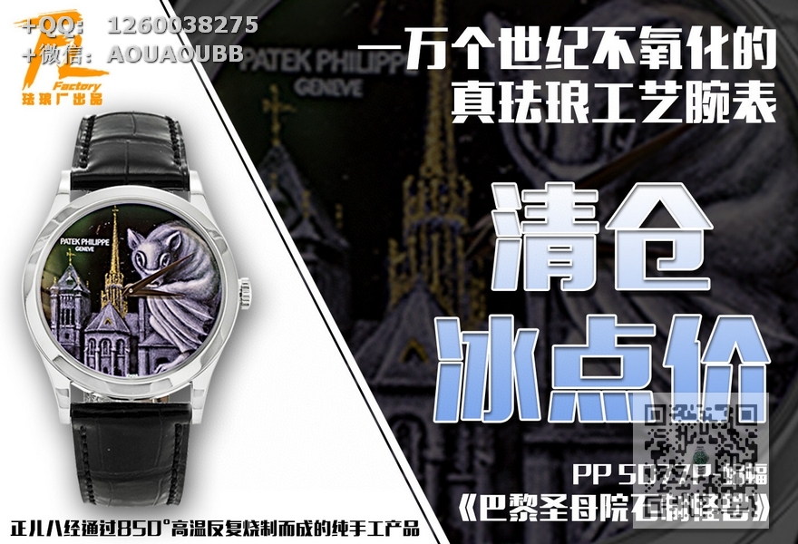 FL珐琅厂承诺所售的每一款表盘均由纯手工在高倍显微镜下用貂毛画笔(约人类头发¼细小)进行绘制,再通过大明火(约850°高温)反复煅烧而成的真珐琅表盘,工艺流程同步正品。每款成品都与原版一样,独一无二,永不氧化