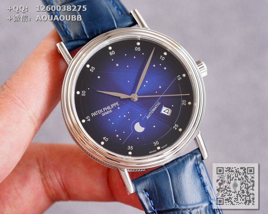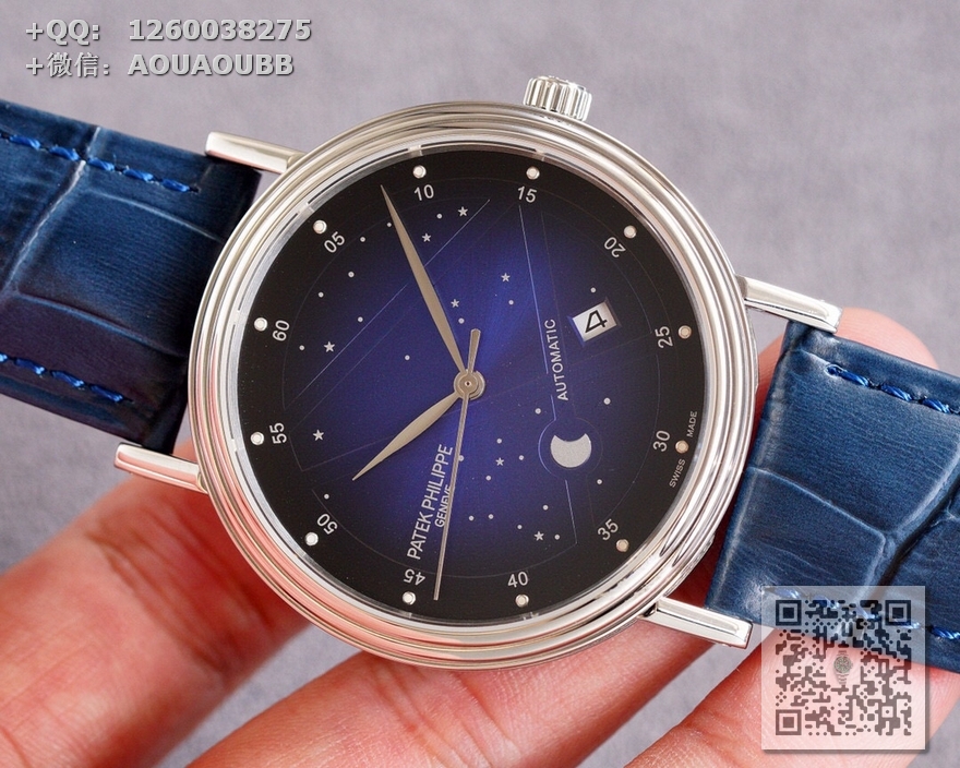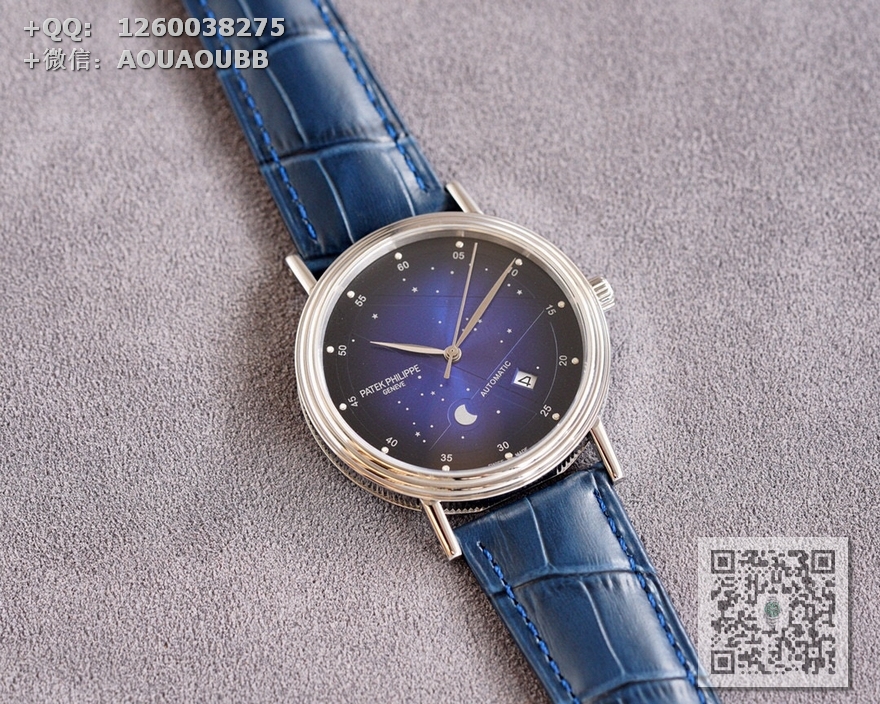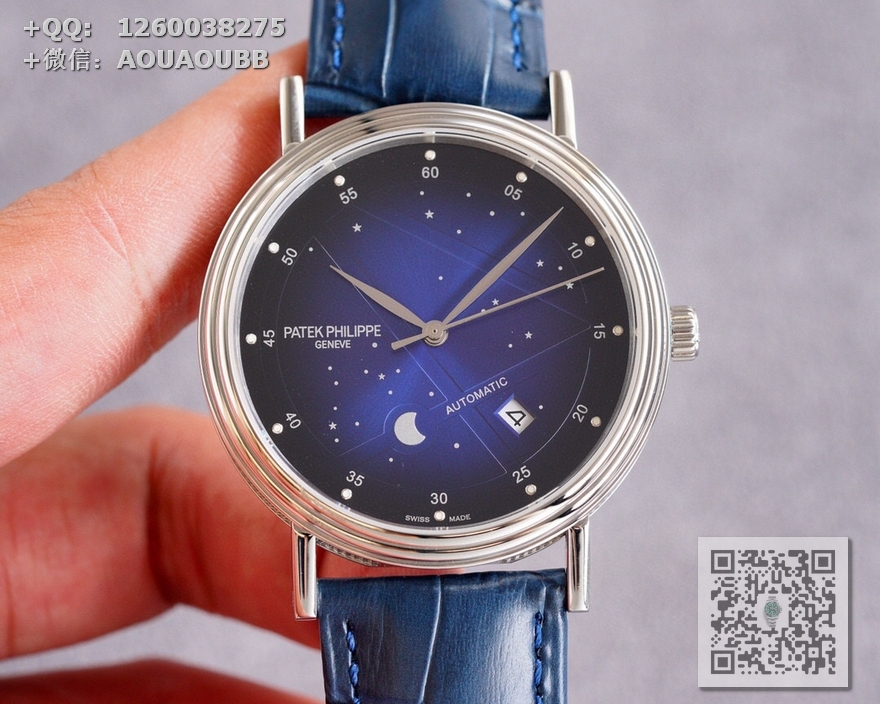 【产品介绍】百达翡丽PATEKPHILIPPE海外版,1851百达创始人安东尼推出古典系列腕表,便一鸣惊人,在伦敦世界博览会被英国维多利亚女皇选中,由此奠定了其贵族地位。为追求产品的高境界,百达翡丽在材质选用上不惜工本。追求完美,将最好的腕表呈现给每一位消费者,此款腕表外壳采用国外三重轮廓工艺,先进的抛光技术,锅盖蓝宝水晶镜面,表盘采用力学压孤工艺技术更显棱线美感,手工植入条钉,并修正时分针孤度与字面完美搭配,做到真正的完美复刻!直径40mm x 10mm,机芯:Calibre 9015,动能存储48小时,意大利牛皮,18k电镀工艺,古典系列腕表价格亲民,物超所值!