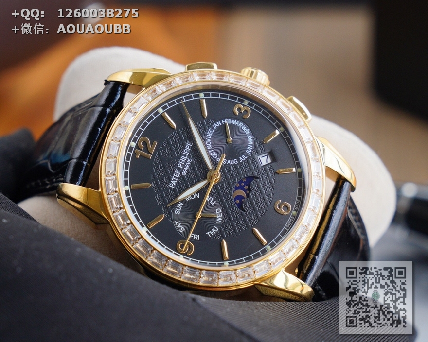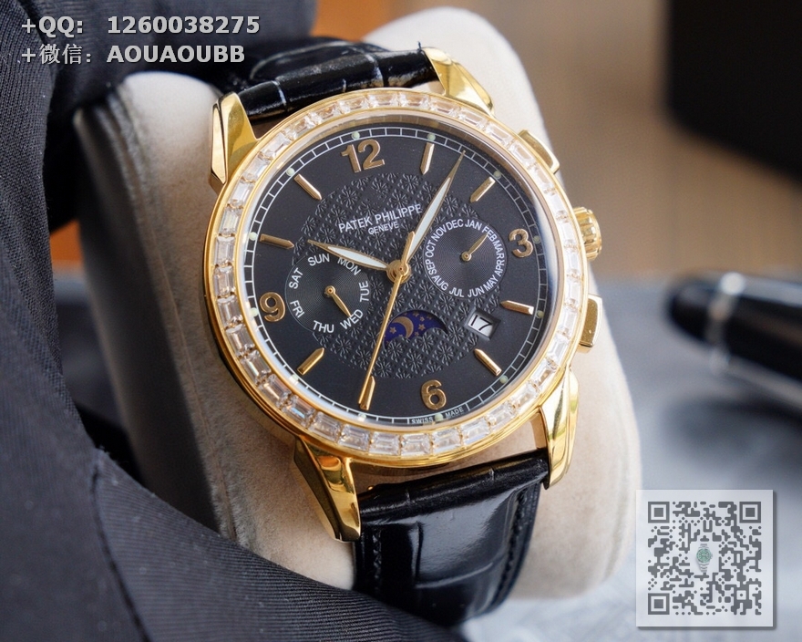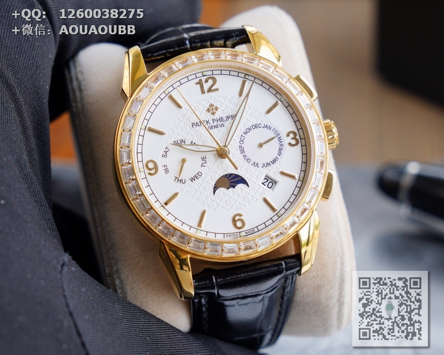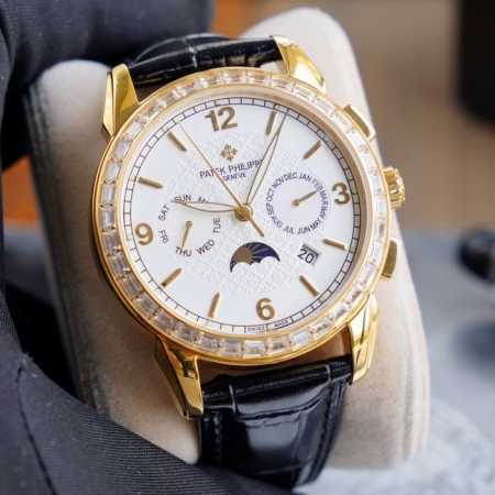 百达翡丽复杂功能时计系列多功能男士全自动机械腕表 搭载原装进口9100机芯 功能月相,月份,星期日历显示 直径42mm 50米防水