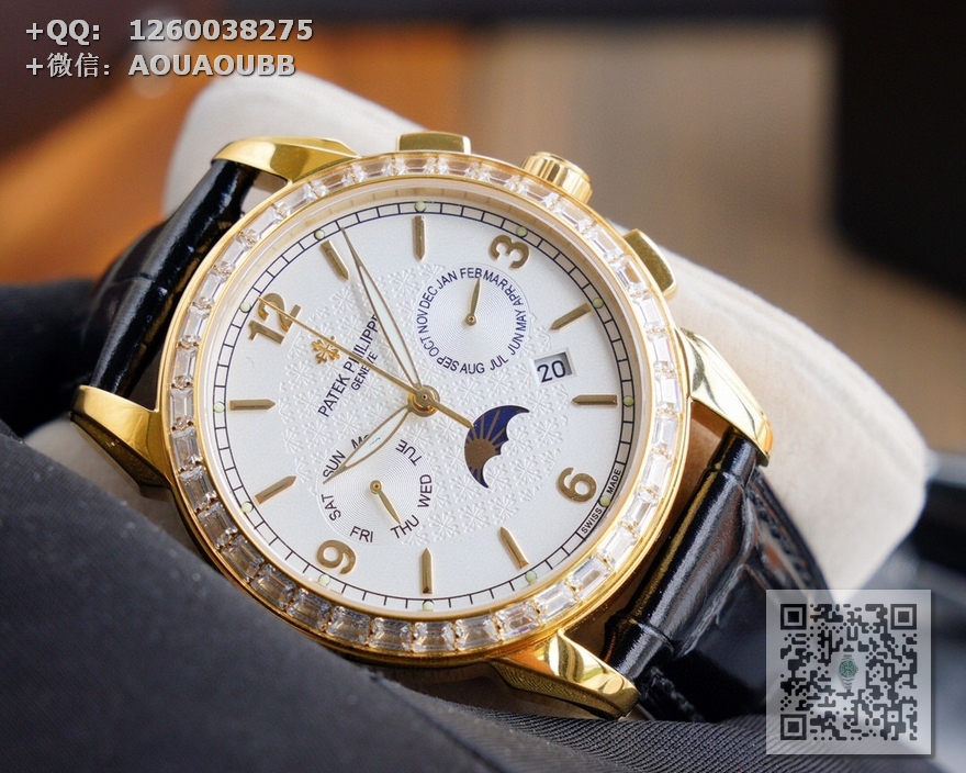 当前位置: 首页 > 百达翡丽Patek Philippe > 百达翡丽复杂功能时计系列多功能男士全自动机械腕表 搭载原装进口9100机芯 功能月相,月份,星期日历显示 直径42mm 50米防水