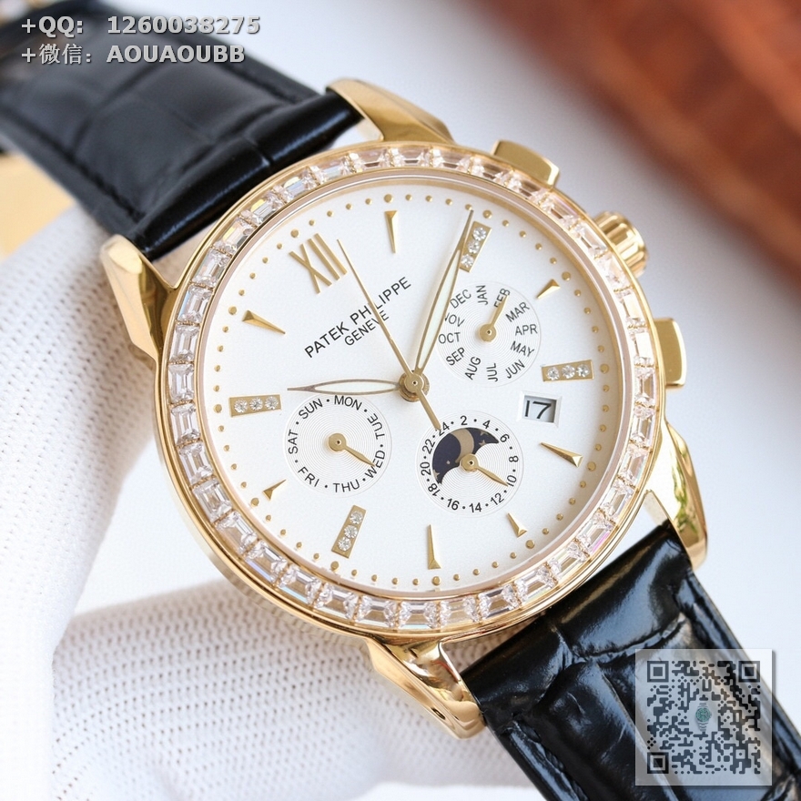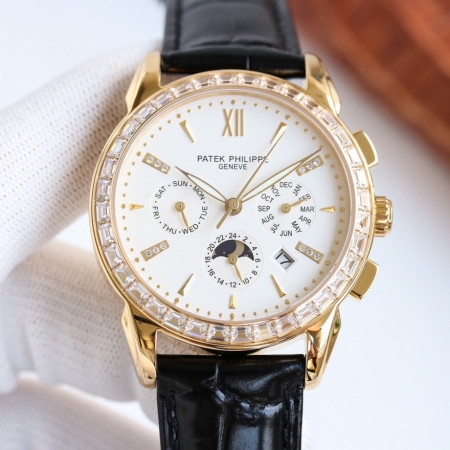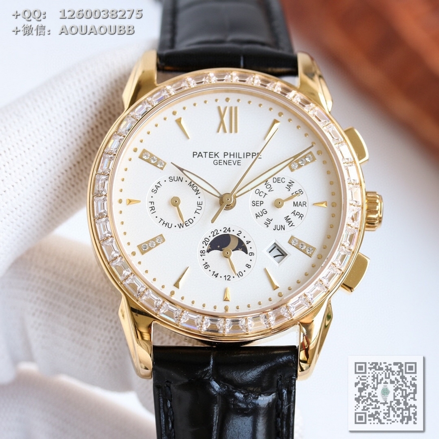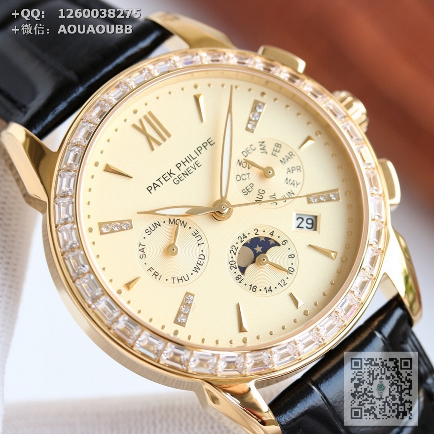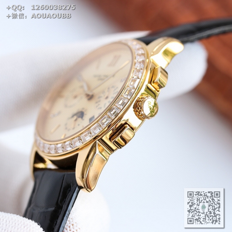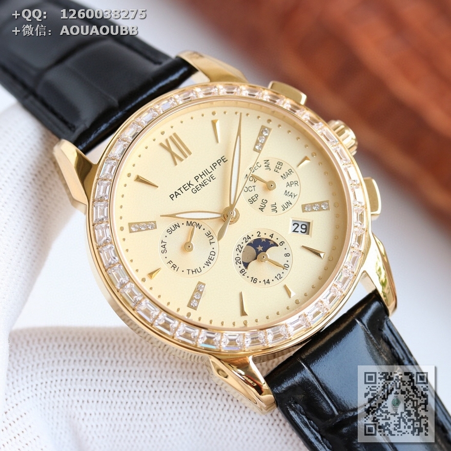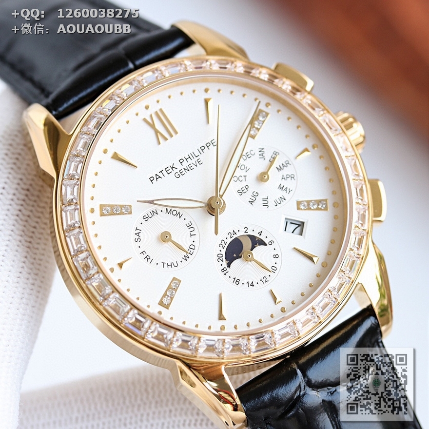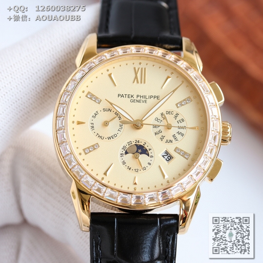 百达翡丽复杂功能时计系列多功能男士全自动机械腕表 搭载原装进口9100机芯 功能月相,月份,星期日历显示 直径42mm 50米防水