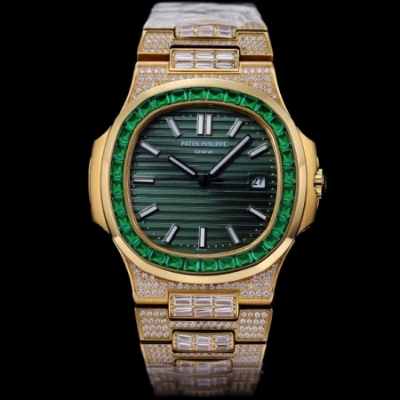 【产品介绍】pp百达.翡丽鹦鹉螺满天星版!️表盘上12个条形刻度,根据原装5711字钉开模,效果保持了跟原装一致的黑油条形夜光刻度。️全新定制原版324机芯,机芯摆轮位置与原装一致,CNC数控技术打造机芯夹板,深度洗花和刻字,效果保持了原装应有的细节,机芯结构还原度极高。️圈口目前唯一使用大T方钻镶石工艺,历经无数次的加工工艺,不计成本,只为还原正品后镶钻的效果,终于大功告成!️指针升级:秒针中心点升级为针轴秒针。每处细节都做到了极致!欢迎品鉴!ZF出品
