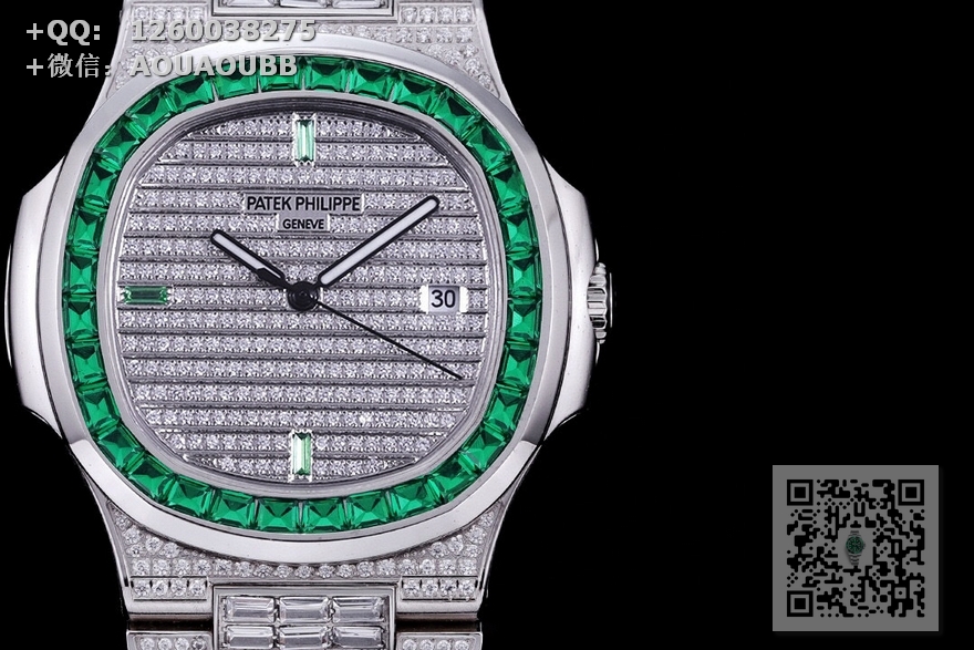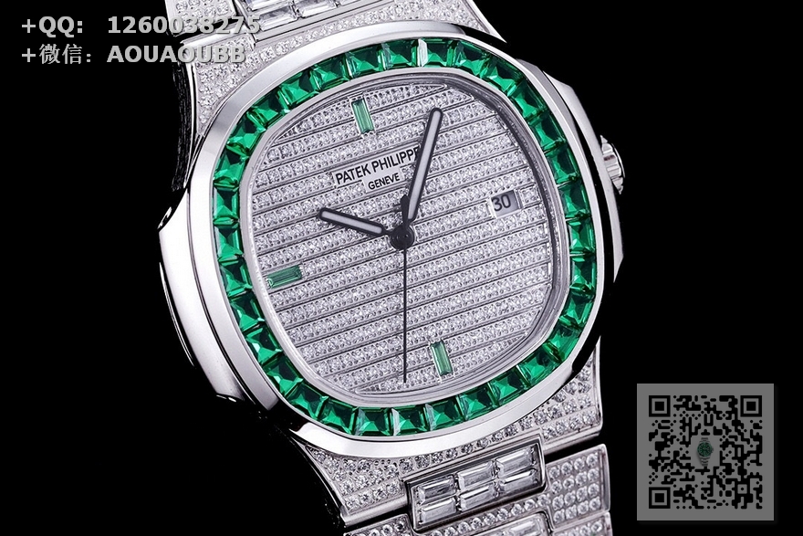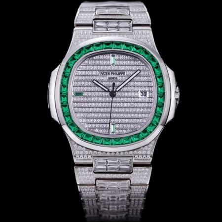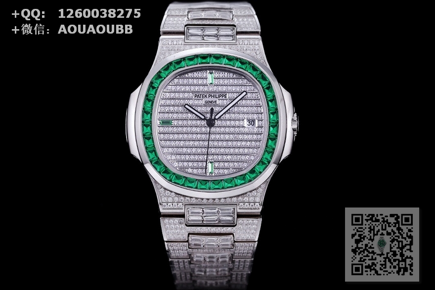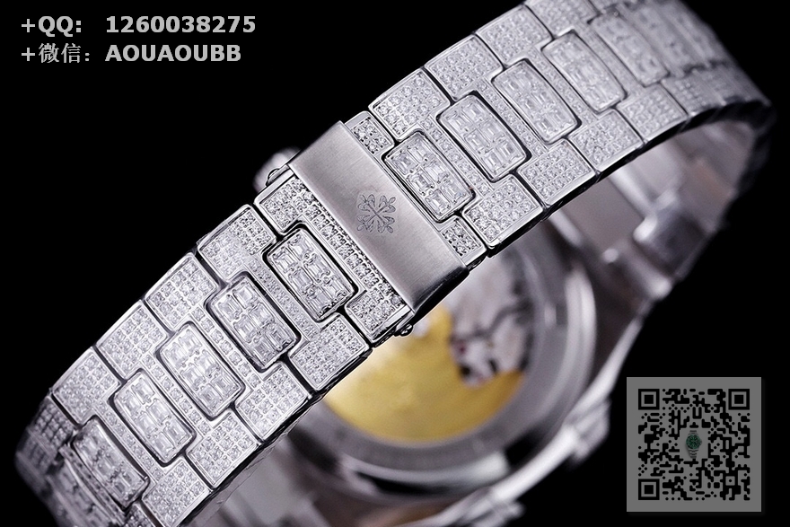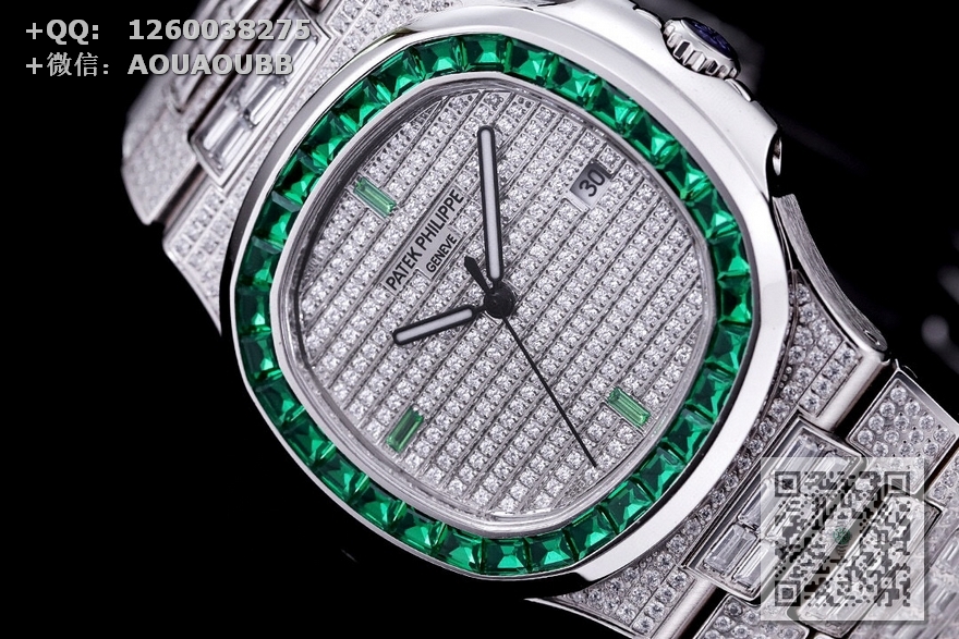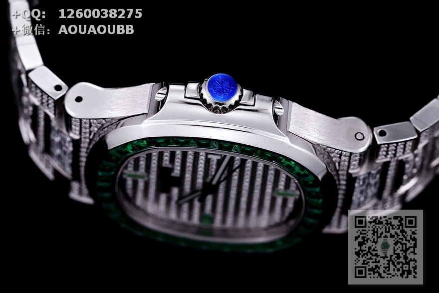 【产品介绍】pp百达.翡丽鹦鹉螺满天星版!️表盘上12个条形刻度,根据原装5711字钉开模,效果保持了跟原装一致的黑油条形夜光刻度。️全新定制原版324机芯,机芯摆轮位置与原装一致,CNC数控技术打造机芯夹板,深度洗花和刻字,效果保持了原装应有的细节,机芯结构还原度极高。️圈口目前唯一使用大T方钻镶石工艺,历经无数次的加工工艺,不计成本,只为还原正品后镶钻的效果,终于大功告成!️指针升级:秒针中心点升级为针轴秒针。每处细节都做到了极致!欢迎品鉴!ZF出品