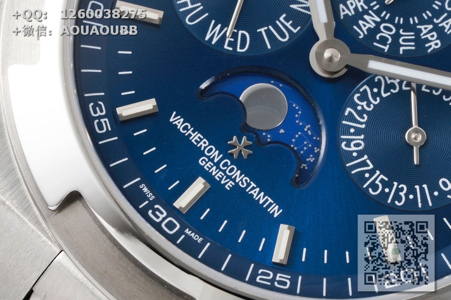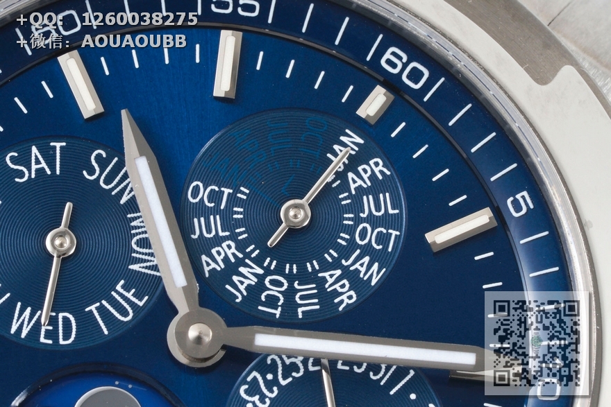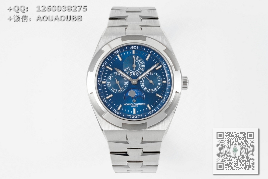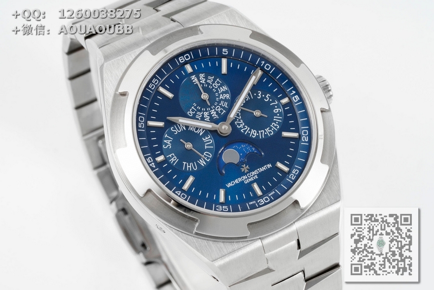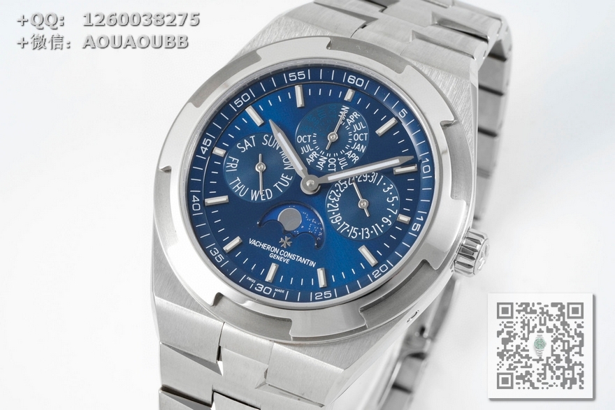 【产品介绍】PPF最新顶级版本 Overseas纵横四海4300V系列万年历腕表 腕表采用直径41.5毫米的表壳,搭载自动上链机械机芯—— 1120 QP/1超薄机芯,该机芯配备万年历和月相显示。(9字位星期、3字位日期、12字位月份) 经旭日纹缎面拉丝处理的金质表盘 以蜗形纹装饰的小表盘清晰易读 搭配造价不菲的指针相得益彰 每一枚腕表都可以配戴一键快拆式钢带 胶带 皮带 欢迎鉴赏