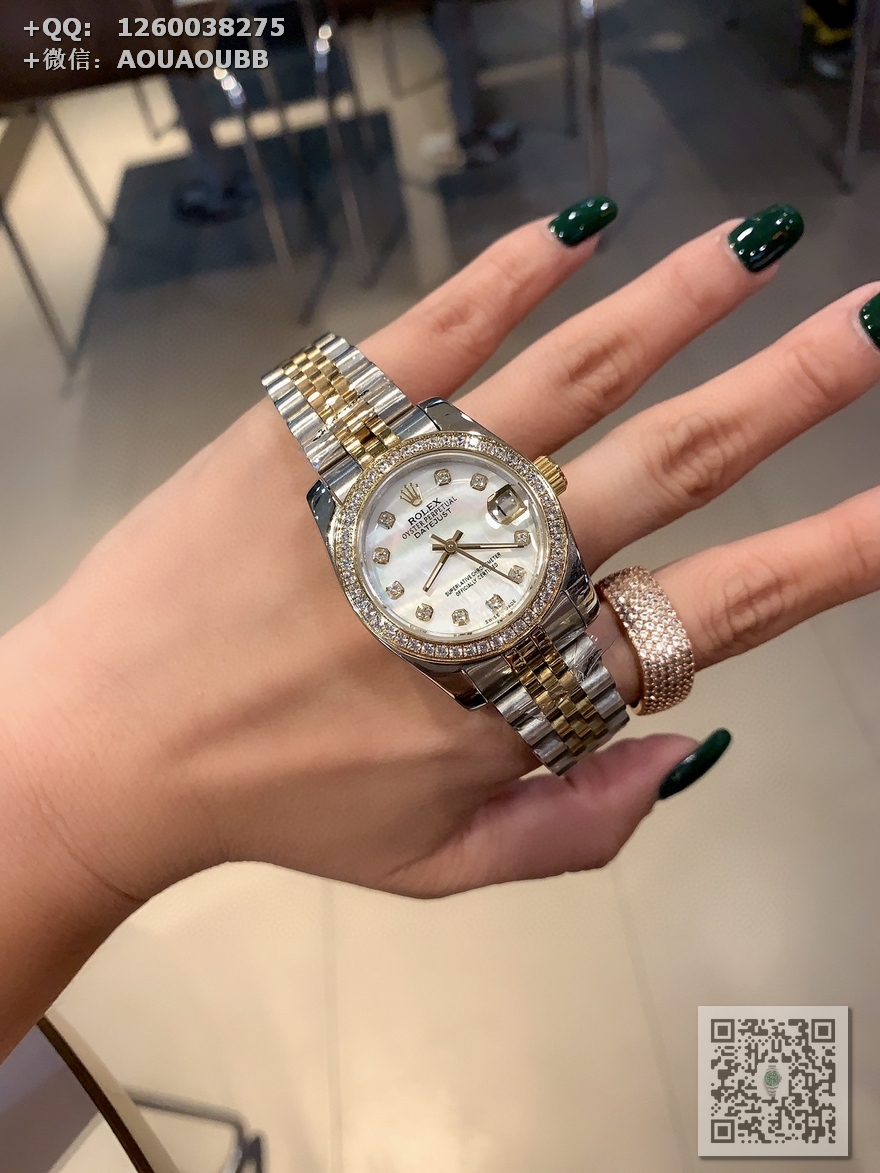 【产品介绍】劳力士 日志 系列经典女款31实芯5珠钢带-原装压扣 ️  小红书火爆推荐云杉绿盘,白色表盘采用A级珍珠贝壳材质彰璀璨夺目、设计显出独特高贵优雅女神气质!904L精钢表壳搭配施华洛世奇水晶钻石,纯手工镶嵌而成,女性气质,高端大气,不显浮华的风格广受成功人士喜爱,逐渐深刻人心,并备受各界女士推重。工艺精湛,糅合尊贵、典雅和独特气质于一身,位列世界手表业之翘楚材料,31mm尺寸更适合中国 女士手腕