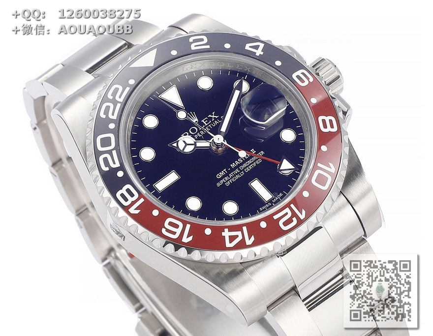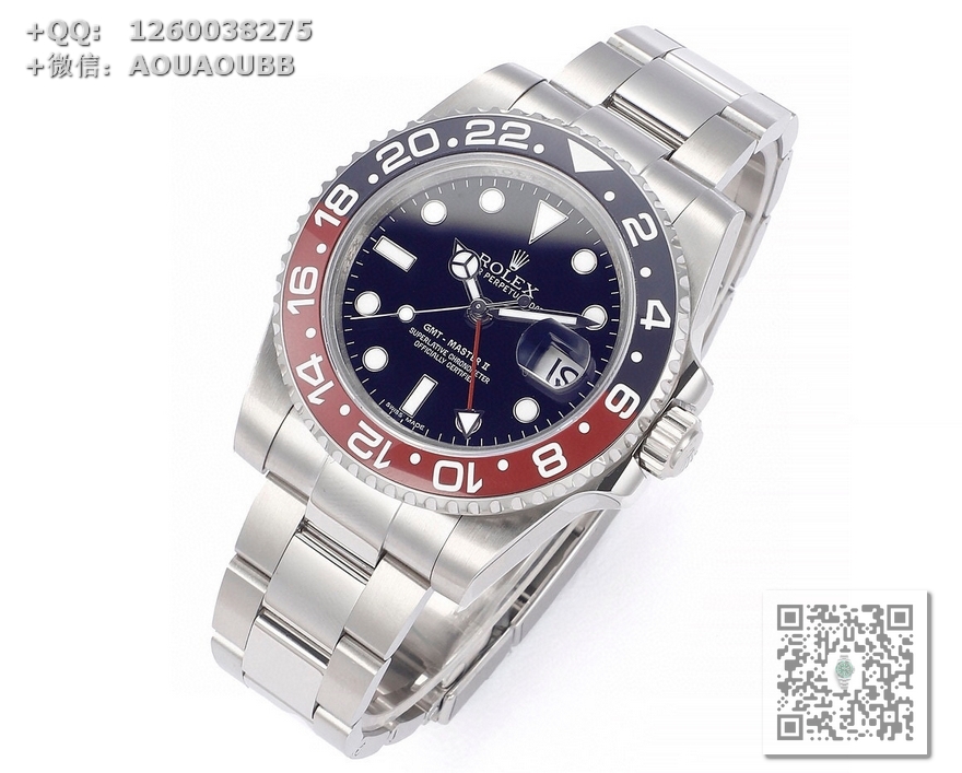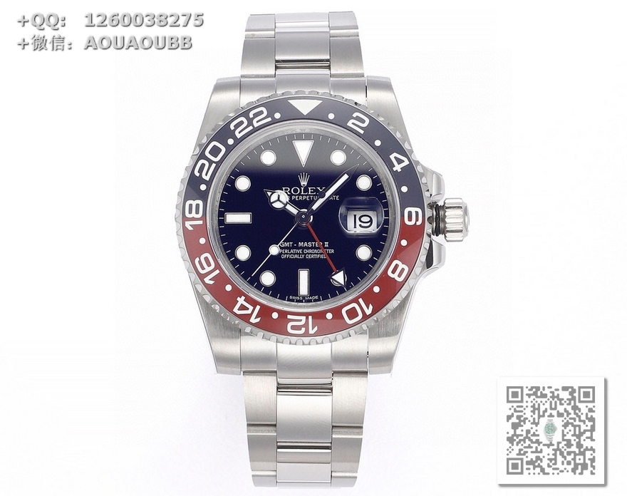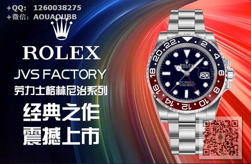 【产品介绍】JVS新品 劳力士GMT格林尼治升级版。采用正品一致904L钢材,一体成形的陶瓷白金字体圈口与正品一致。全新3186一体机芯。同步正品GMT针通过正反调时间及日历,配件通用原装。904L钢表壳表链,蓝宝石镜面,超级夜光,双向陶瓷旋转表圈,折叠表扣。
