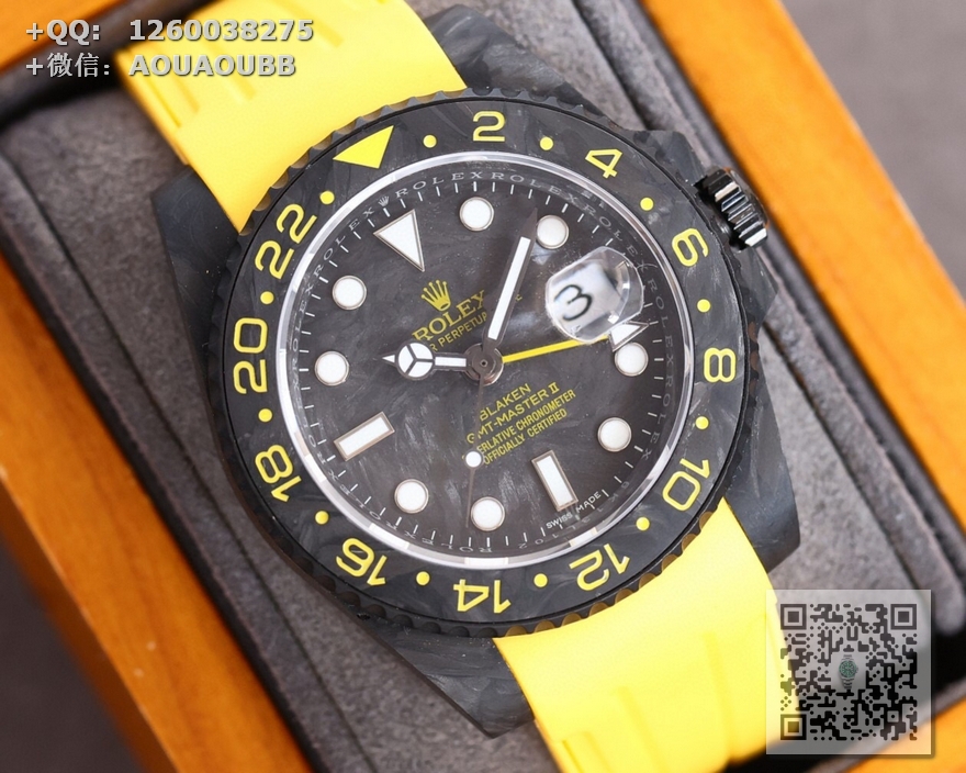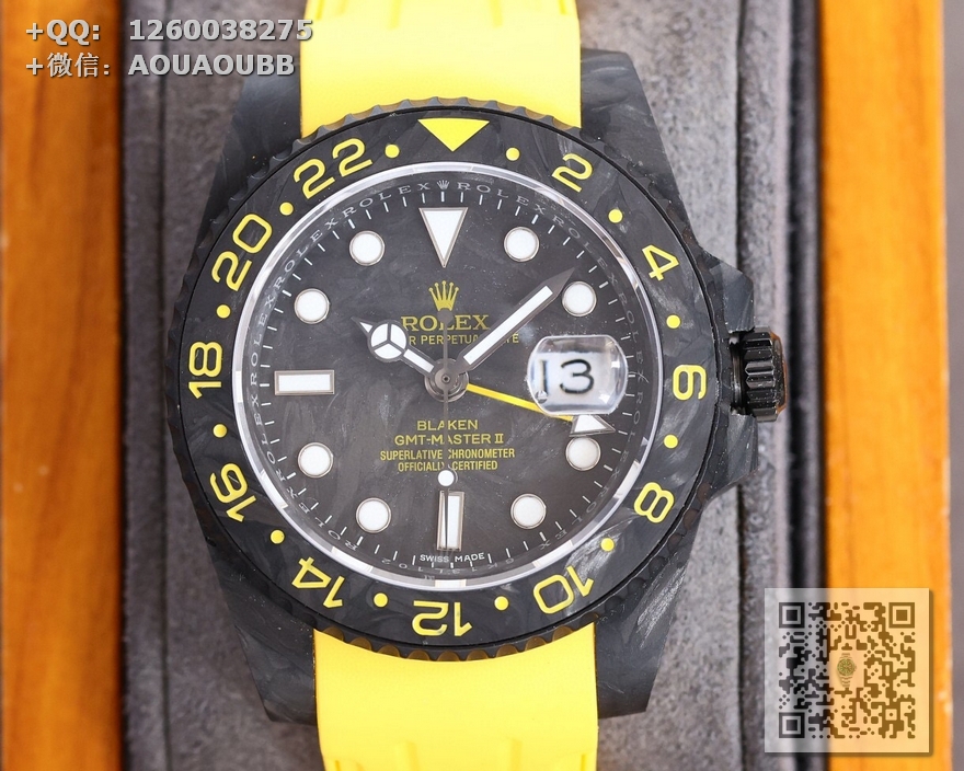 【产品介绍】劳力士Rolex Daytona翡翠夜光全碳纤维GMT横空出世 这款获得天文台认证的首款全碳纤维GMT搭载2836全自动机械 蓝宝石抗刮损水晶镜面 碳纤维字面 完美复刻 原装同步橡树胶带原装扣,另赠送一条专用的魔术贴表带,更加柔软舒适 更加方便佩戴 爱不释手的劳力士GMT !