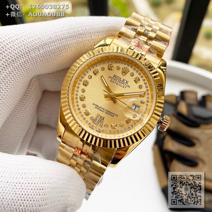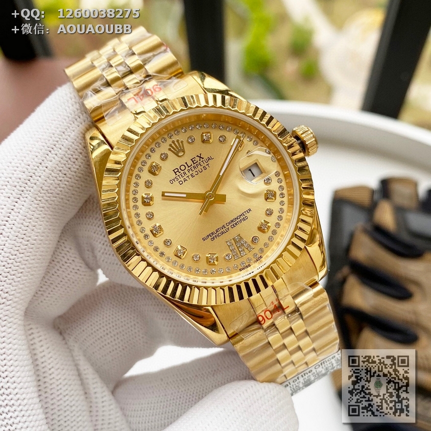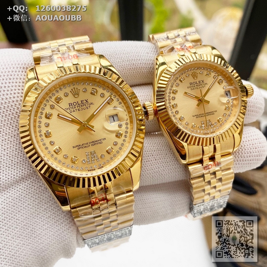 【产品介绍】复刻最高版本劳力士日志情侣对表EW最新诚意之作劳力士日志型,完美修正近年间三角抗纹外圈包金度不够的问题,男士41mm!女士35mm!表壳用精钢材并采用真18K金电镀用来解决金表变暗、掉色、掉皮的尴尬问题,机芯则使用完美进口零反修更稳定,更值得一提的是此次更新的版本解决了以往版本一直没有解决的12点位劳力士皇冠LOGO立体度的问题,字面的印刷立体度,刻度石头则抛弃以往的锆石采用施华洛世奇人工水晶,不惜成本只为完美,可谓用心至极,完美展现工匠精神。并搭配正品代购包装物料,重新定义最高品质的劳力士日历型,真正的A级副本劳力士日历型!!