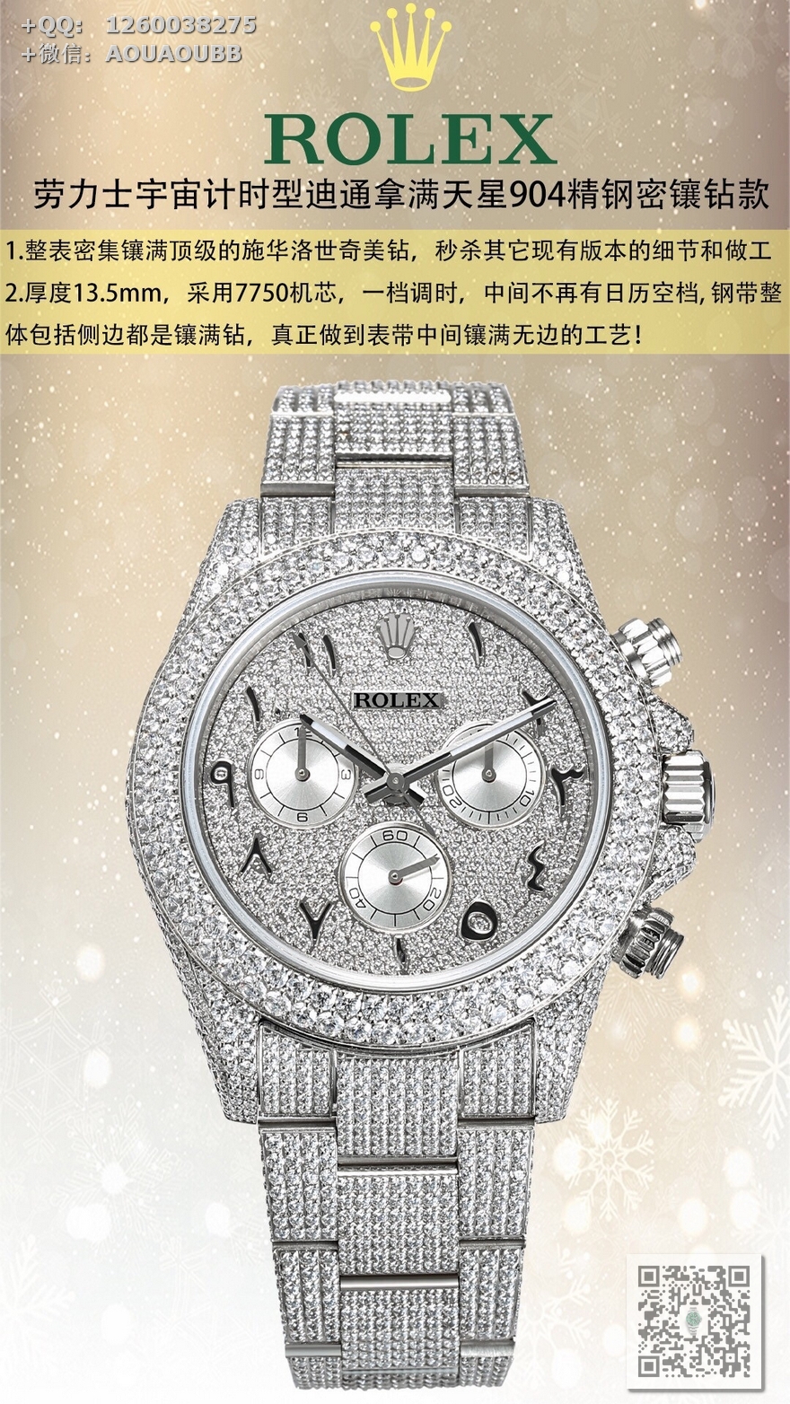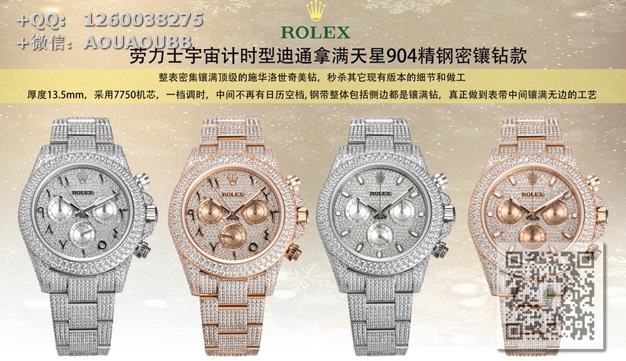 整表密集镶满顶级的施华洛世奇美钻,秒杀其它现有版本的细节和做工!