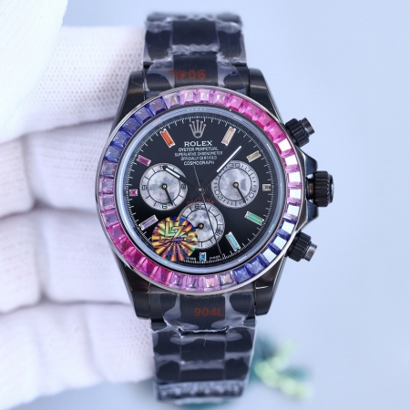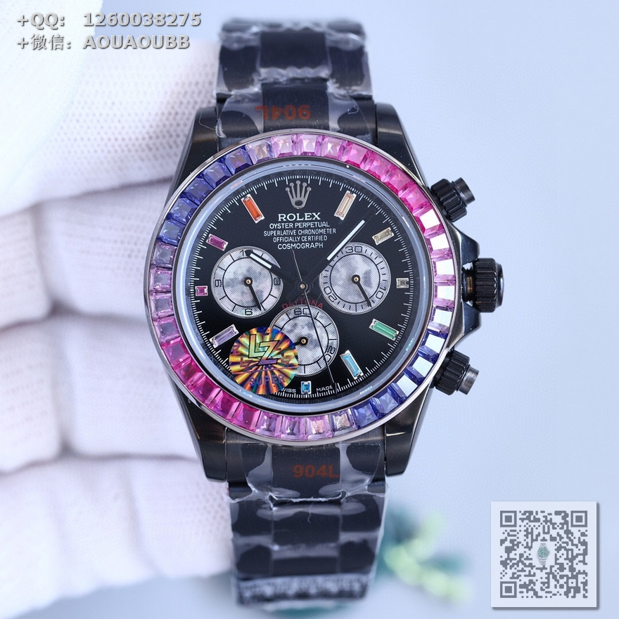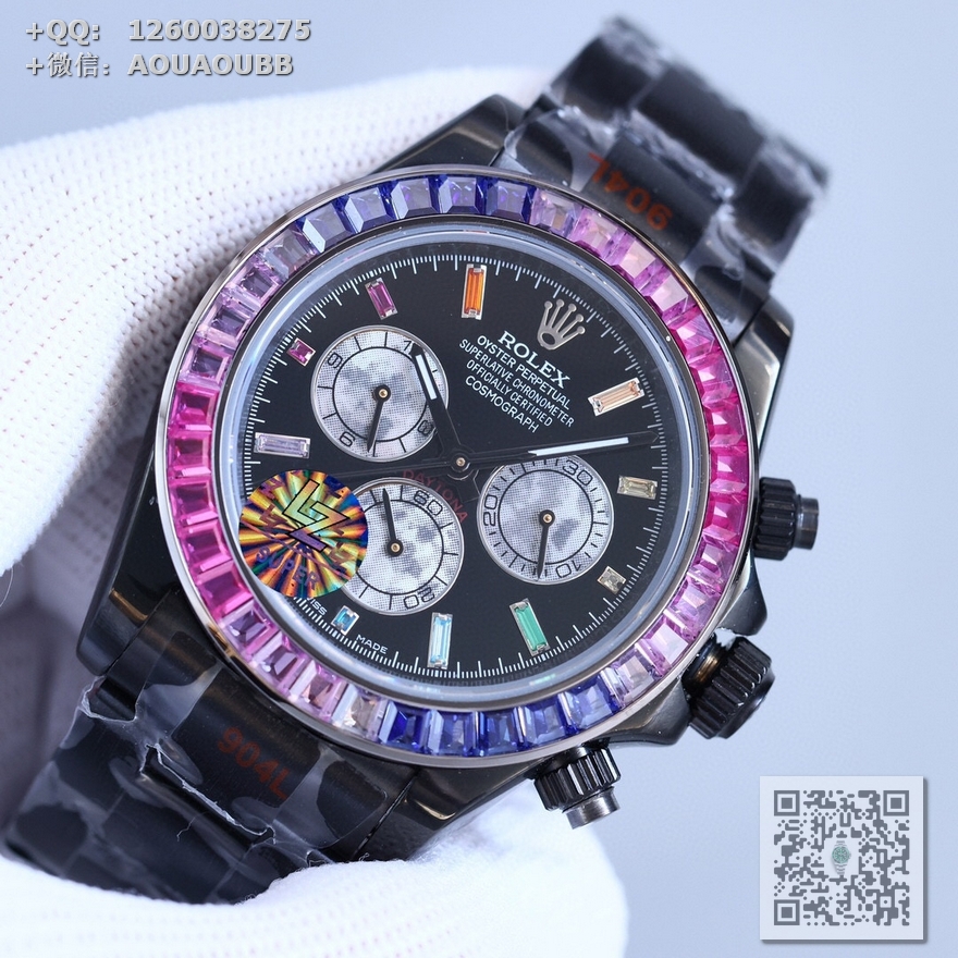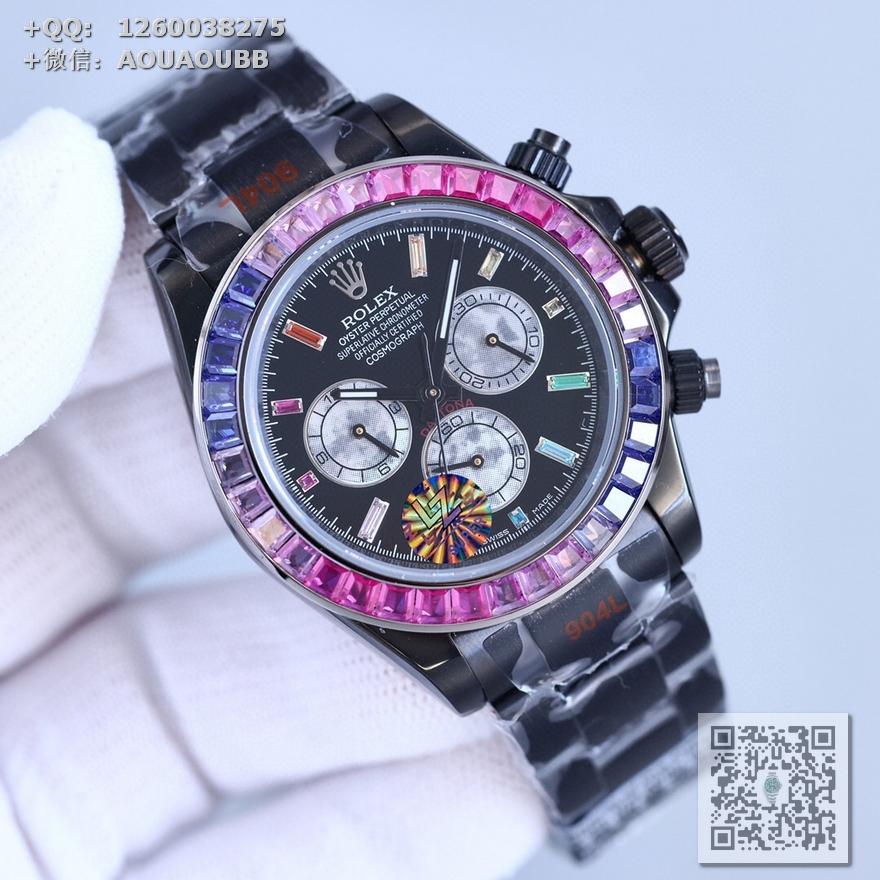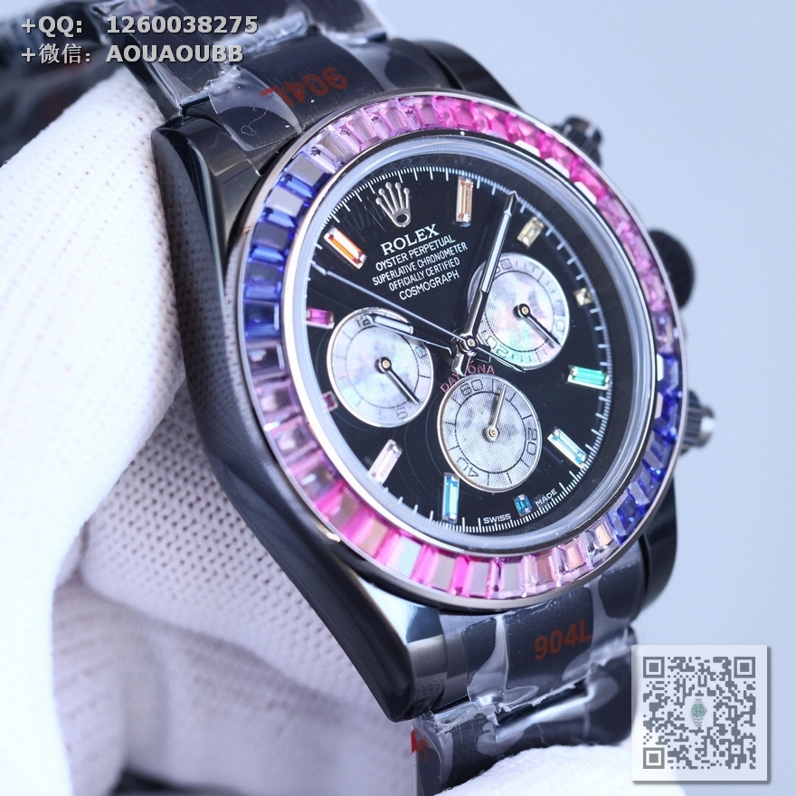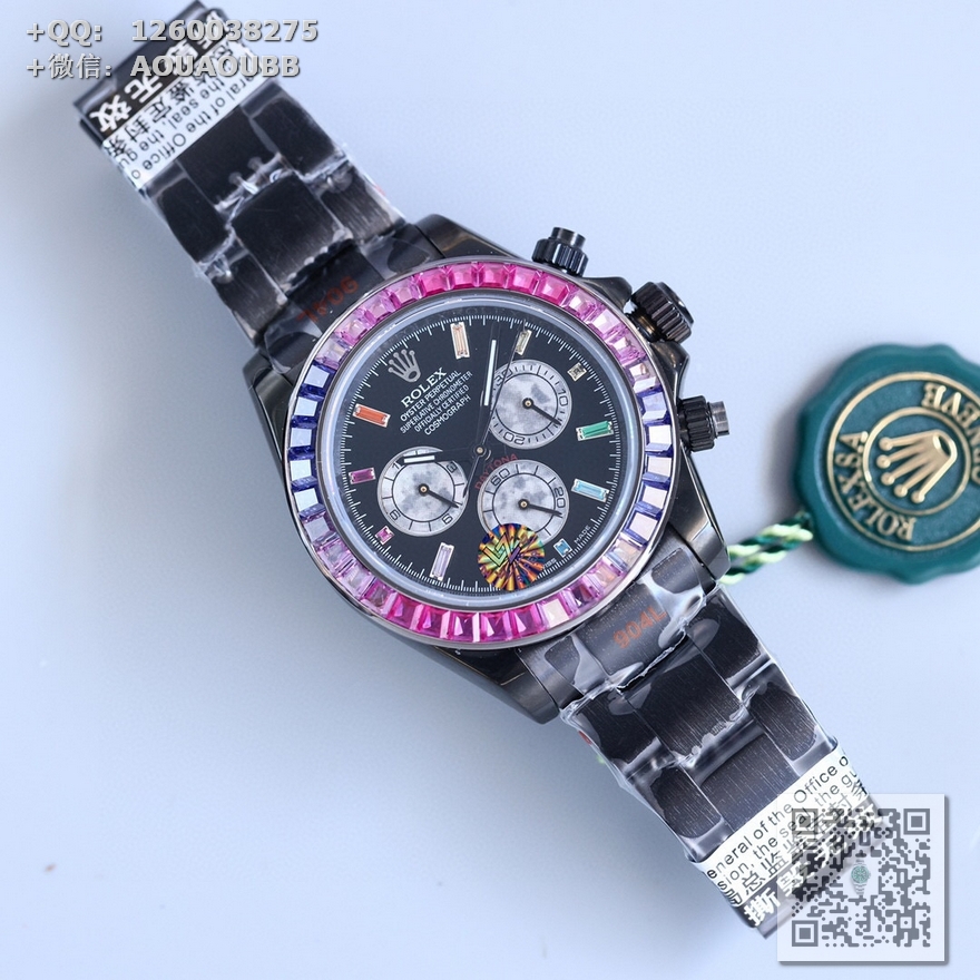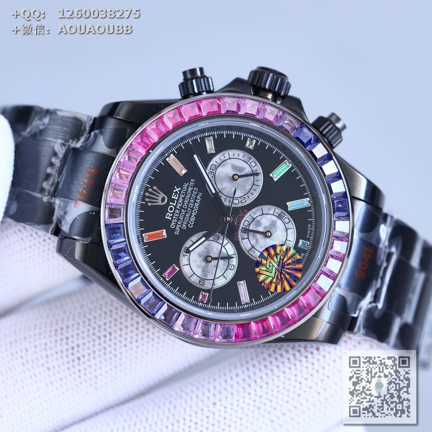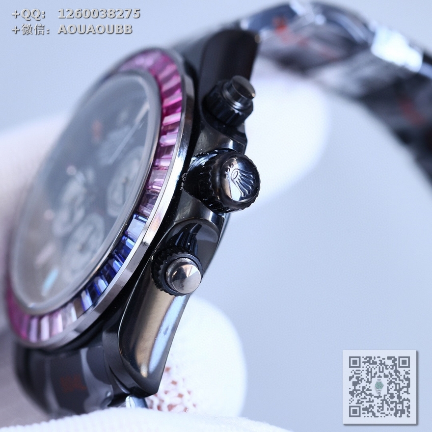 【产品介绍】Rolex最新第三代迪通拿可乐彩虹钻款!最新碳黑复刻版40mm高端品质实拍!全黑钢迪通拿!采用改良版最新真功能一档7750多功能机械机芯!可选配真皮表带或胶带或精钢表带!